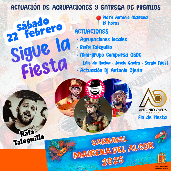 Presentada la programación y el cartel del Carnaval 2025, obra de la vecina Lucía Domínguez Lozano, y el cartel infantil realizado por María López Sánchez, alumna de 5 de Primaria del CEIP Isabel Esquivel. El acto estuvo conducido por el concejal de Deportes, Javier Rodríguez y se celebró ayer en la Villa del Conocimiento y las Artes.