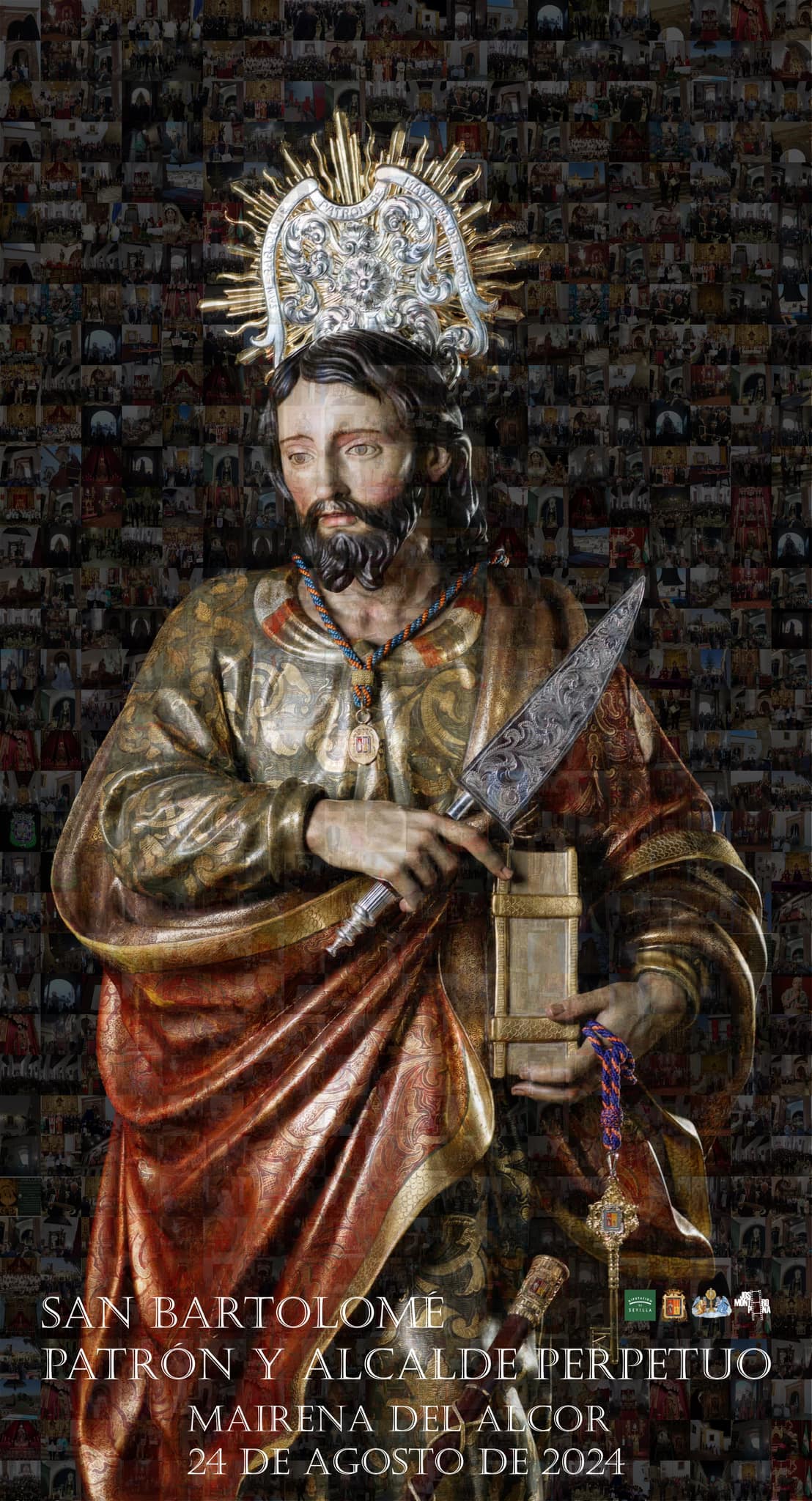 La Archicofradía Sacramental de Mairena del Alcor presentó en la tarde de ayer el cartel de las fiestas patronales en honor a San Bartolomé, Patrón y Alcalde Perpetuo de Mairena de Alcor, de cara a su celebración el próximo 24 de agosto, en el salón de plenos del Ayuntamiento de Mairena del Alcor. Se trata de una obra del videógrafo Jose Montero Peña sobre una fotografía originaria de la fotógrafa local Mary Guillén.