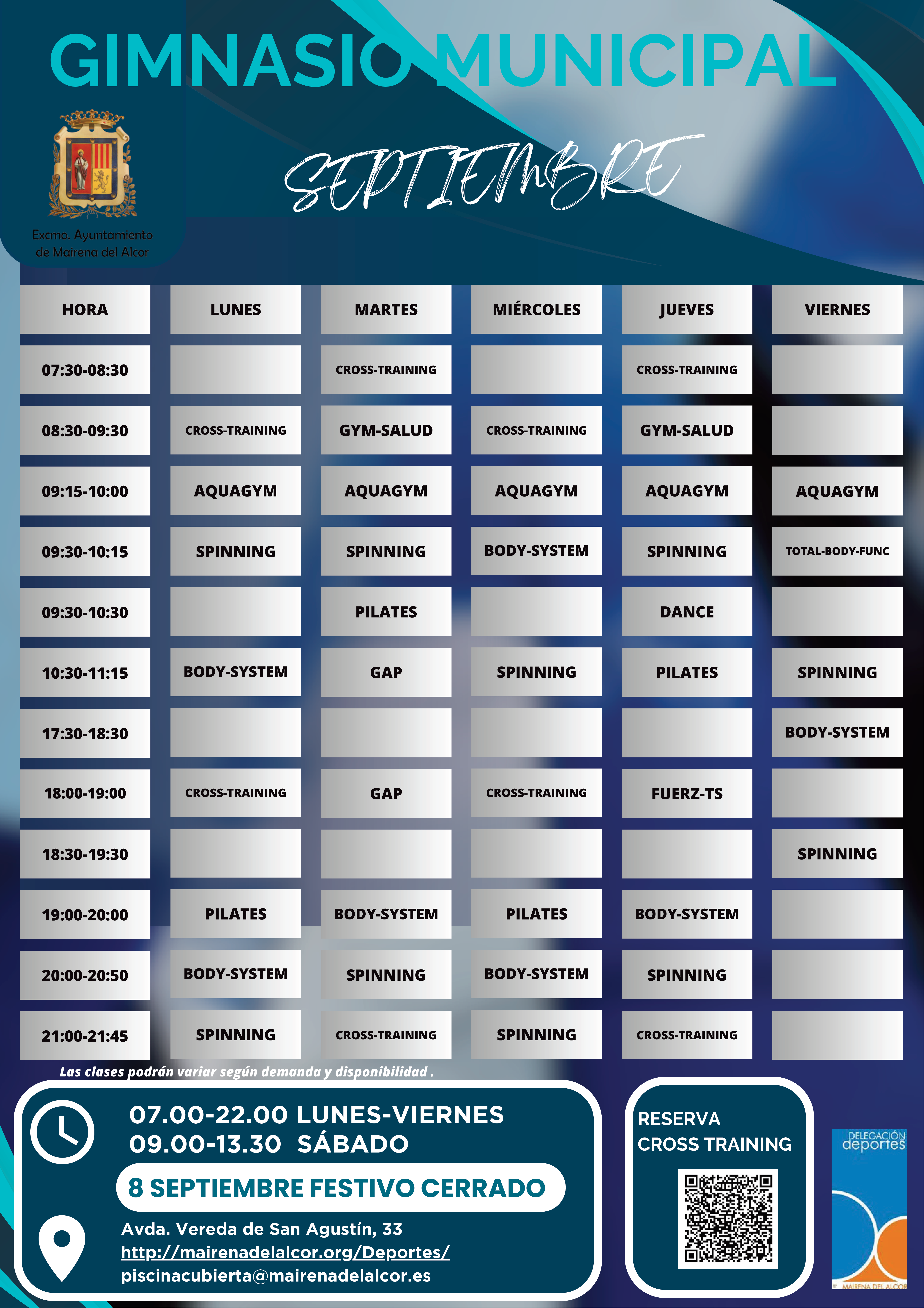 Delegación de Deportes Teléfono 95 509 30 58 email deportes@mairenadelalcor.esPiscina y Gimnasio Teléfono 95 574 88 67 email piscinacubierta@mairenadelalcor.es