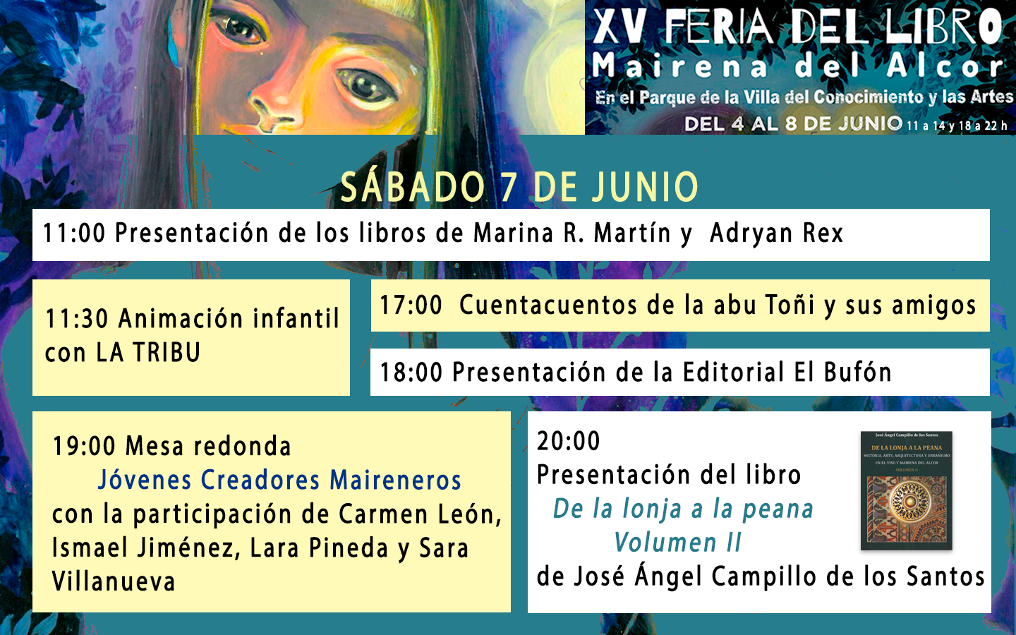 19:00 Mesa redonda Jóvenes Creadores Maireneros, con la participación de Carmen León, Ismael Jiménez y Lara Pineda