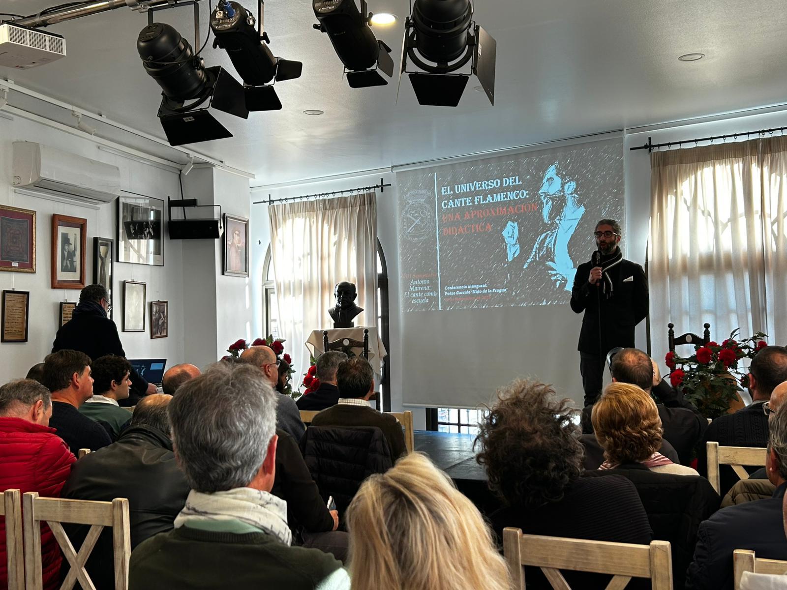 El seminario incluyó dos conferencias especializadas: la primera, a cargo de Pedro Garrido “Niño de la Fragua”, abordó una aproximación didáctica al universo del cante; la segunda, ofrecida por Ramón Soler, analizó la presencia de Antonio Mairena en los cantes derivados del fandango, con ilustraciones musicales a cargo de Bonela hijo y Bonela chico. La jornada concluyó con una convivencia flamenca, punto de encuentro entre participantes y artistas.