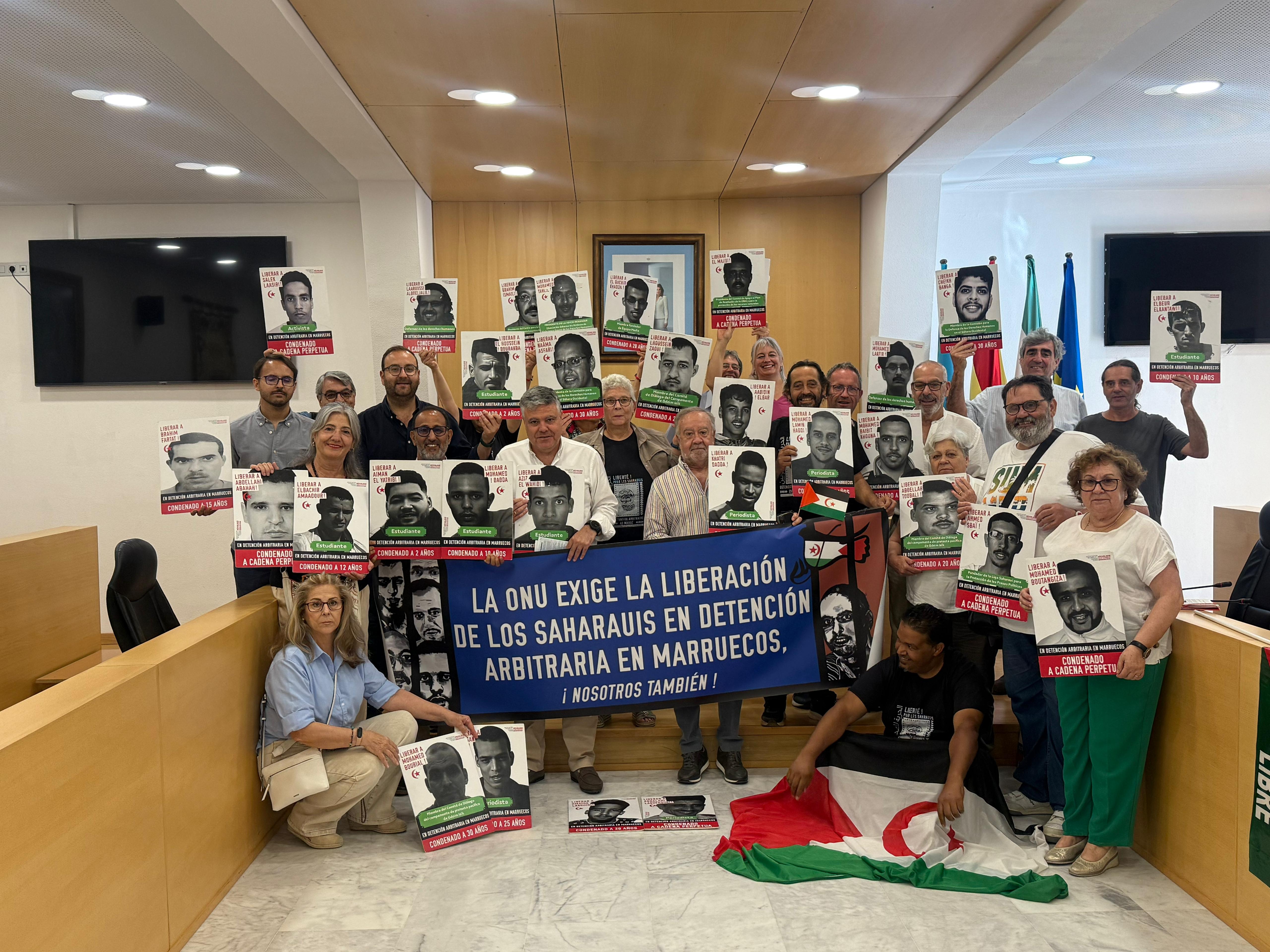 El alcalde, Juanma López, y el concejal de Políticas Sociales, Alejandro Cruz, han recibido en el salón de plenos del Ayuntamiento la Marcha por la Libertad de los presos políticos saharauis en un acto de solidaridad y compromiso con los Derechos Humanos, en especial los derechos de los presos políticos saharauis.