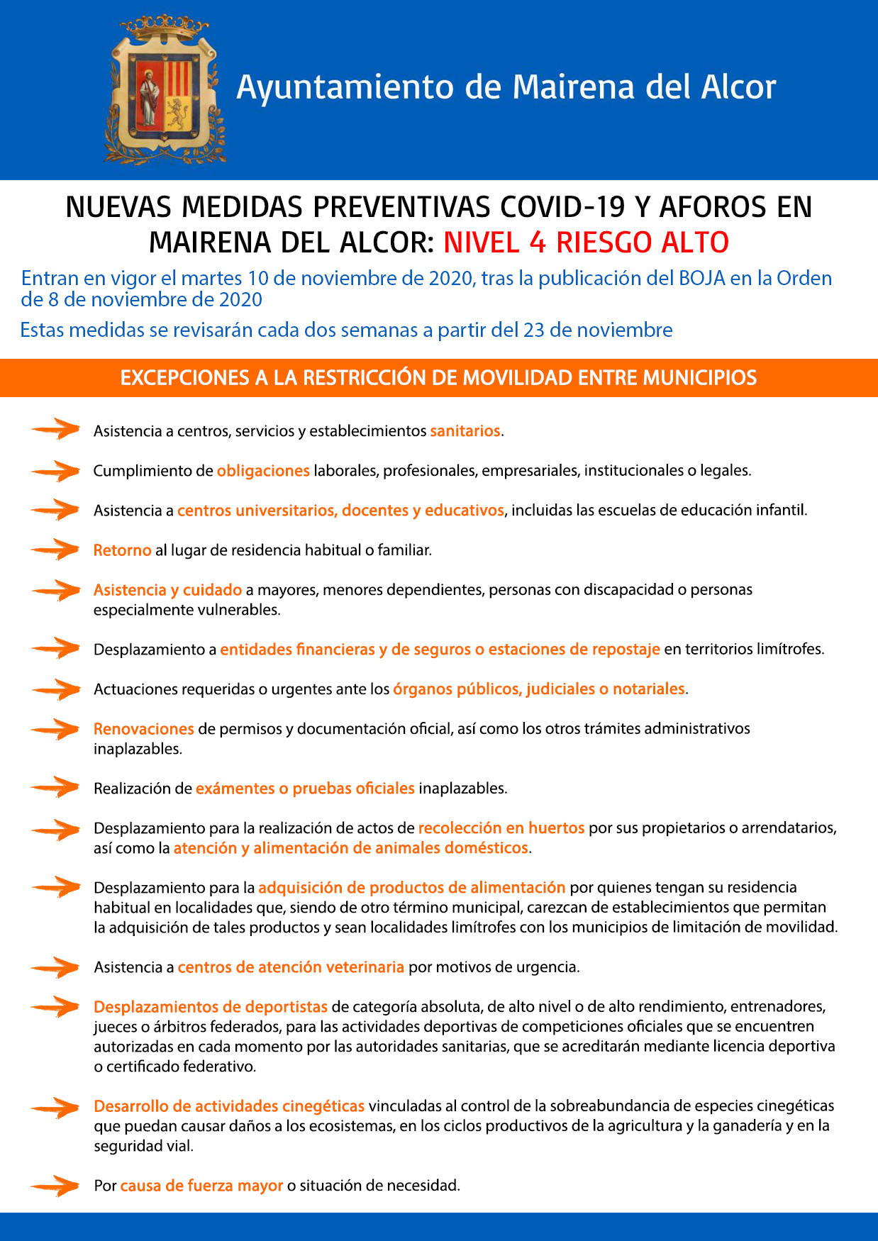 Entran en vigor el martes 10 de noviembre de 2020. Todos los vecinos que tengan alguna duda sobre estas nuevas medidas pueden escribir un correo a comunicacion@mairenadelalcor.es