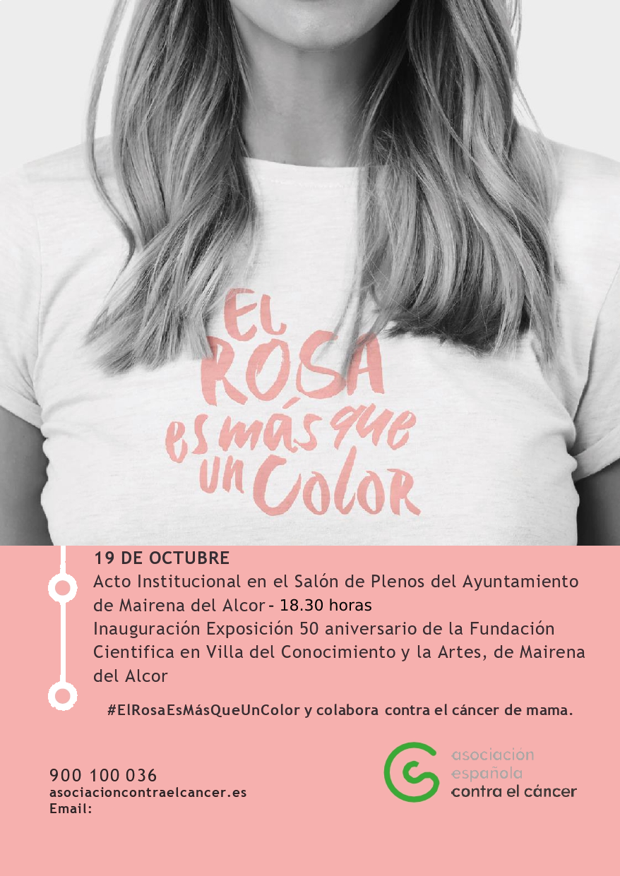 Cada año, el 19 de octubre se celebra el Día Mundial Contra el Cáncer de Mama como recordatorio del compromiso de toda la sociedad en la lucha contra esta enfermedad. El Ayuntamiento mairenero se suma a las numerosas acciones que realiza la Junta Local de la Asociación Española Contra el Cáncer de Mairena del Alcor, integradas en el denominado mes rosa.