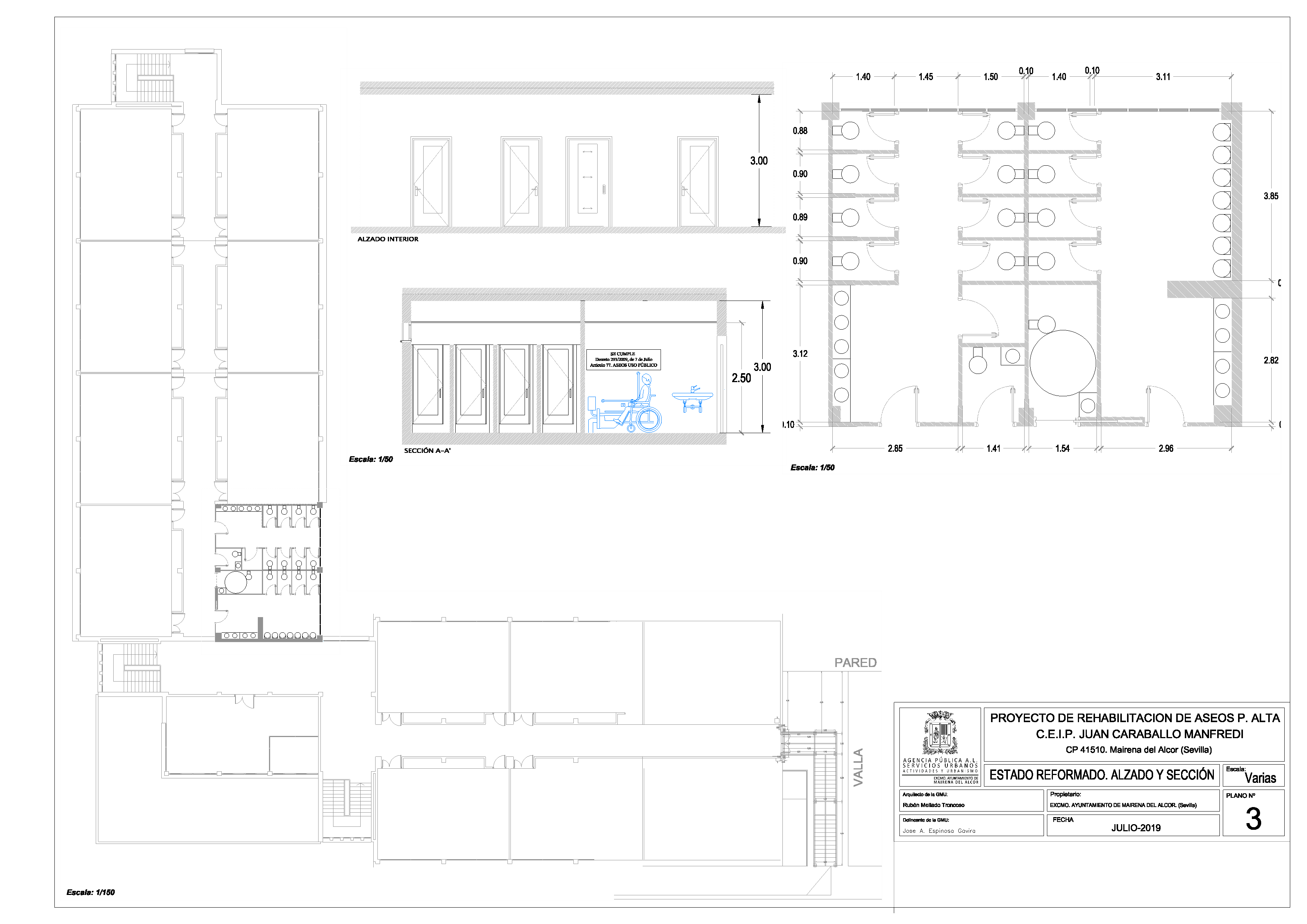En el colegio Juan Caraballo se acometerá la reforma del patio y de los núcleos de aseos ubicados en la primera planta del edificio. Por último, en el Campo de Fútbol Jozabed Sánchez Ruiz se procederá a la sustitución del césped artificial por otro con certificado homologado por la FIFA Quality con una longitud de hoja de 50 mm. Además, se sustituirá el sistema de riego, garantizando la totalidad de superficie del campo, así como también se harán intervenciones que mejoren la seguridad del mismo.