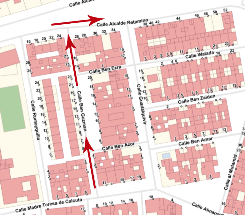 La Policía Local elabora un informe en respuesta a la petición del delegado de Urbanismo, José Navarro, de un estudio de mejora de la circulación en la zona. Este informe propone cambiar el sentido en la calle Ben-Guzmán para que los vehículos entren por calle Madre Teresa de Calcuta y salgan por Alcalde Retamino con dirección a la rotonda. Además del cambio de sentido de la calle Alcalde Retamino en el tramo comprendido entre la rotonda y la calle Ben-Guzmán, para que todos los vehículos que salgan de Juan María Coca, Rumayquilla y Ben-Guzmán, tengan su salida por la rotonda; quedando así toda la calle con un solo sentido de la circulación.