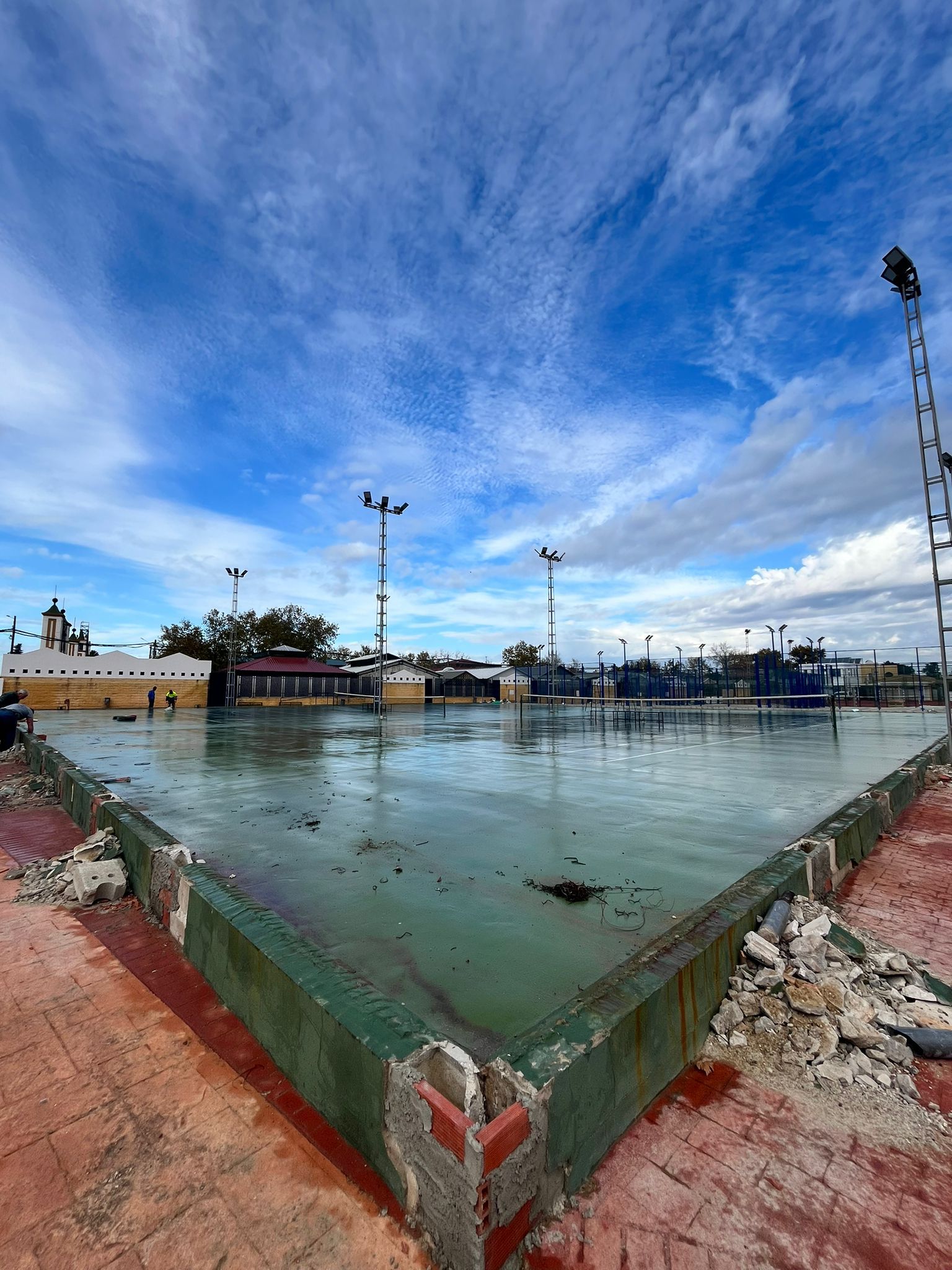 Comienzan los trabajos de remodelación en las pistas de tenis del polideportivo municipal. Concretamente se renovará el pavimento y el cerramiento de estas instalaciones. La inversión es de 40.076,83 €.