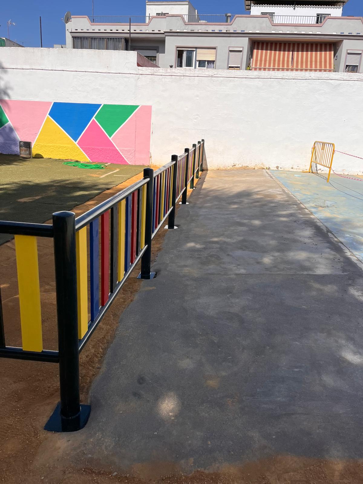 El trabajo coordinado de las delegaciones de Servicios y Empleo ha permitido llevar a cabo las obras de mejora en el patio del colegio Manuel Romero Arregui. Los participantes en el Programa de Empleo y Formación Mairena Ciudad Sostenible II han sido los encargados de asegurar las vallas con la cimentación de los postes, la creación de una rampa hasta la pista y extender el albero.