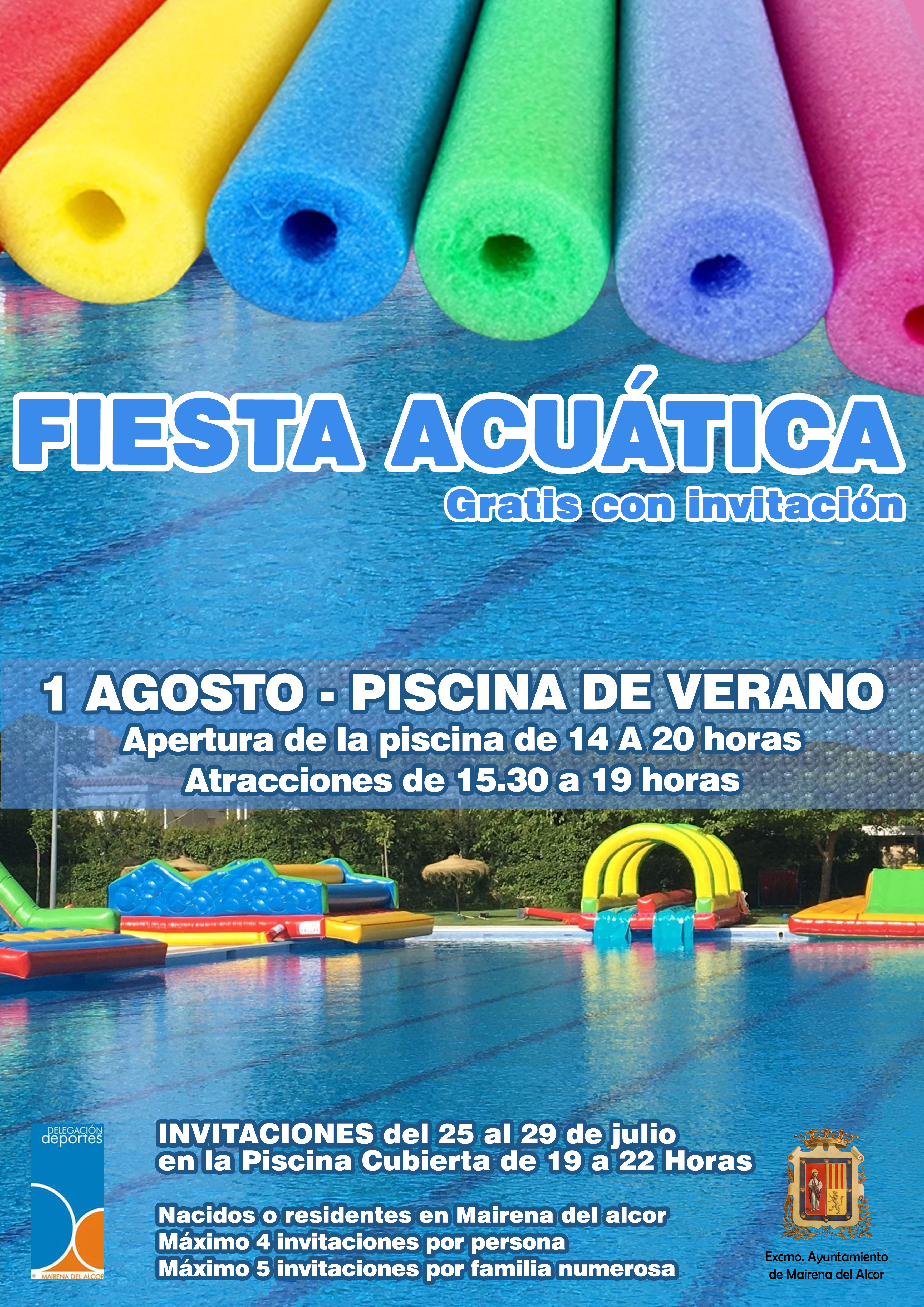 Invitaciones agotadas. La entrada es gratuita por invitación para vecinos de Mairena del Alcor. Las invitaciones se pueden adquirir del 25 al 29 de julio en el mostrador de la piscina cubierta de 19 a 22 horas. Se repartirán un máximo de 4 invitaciones por persona, mostrando el DNI. Las familias numerosas podrán obtener hasta 5 entradas, presentando el libro de familia.