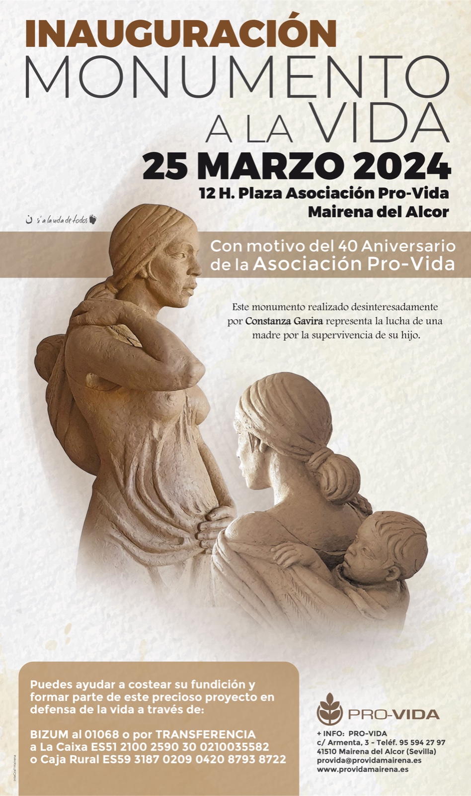 Una obra de la escultora Constanza Gavira, que representa a una mujer embarazada con un bebé a sus espaldas, y que supone un alegato y un canto a la vida y a la defensa de las familias, especialmente las más vulnerables.