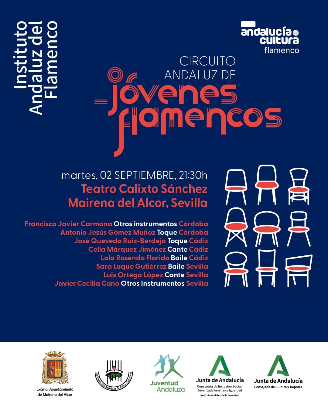 Semifinal del Circuito Andaluz de Jóvenes Flamencos, organizado por el Instituto Andaluz de Flamenco de la Agencia Andaluza de Instituciones Culturales en colaboración con las Federaciones Provinciales de Peñas Flamencas y el Instituto Andaluz de la Juventud. Entrada libre hasta completar aforo.
