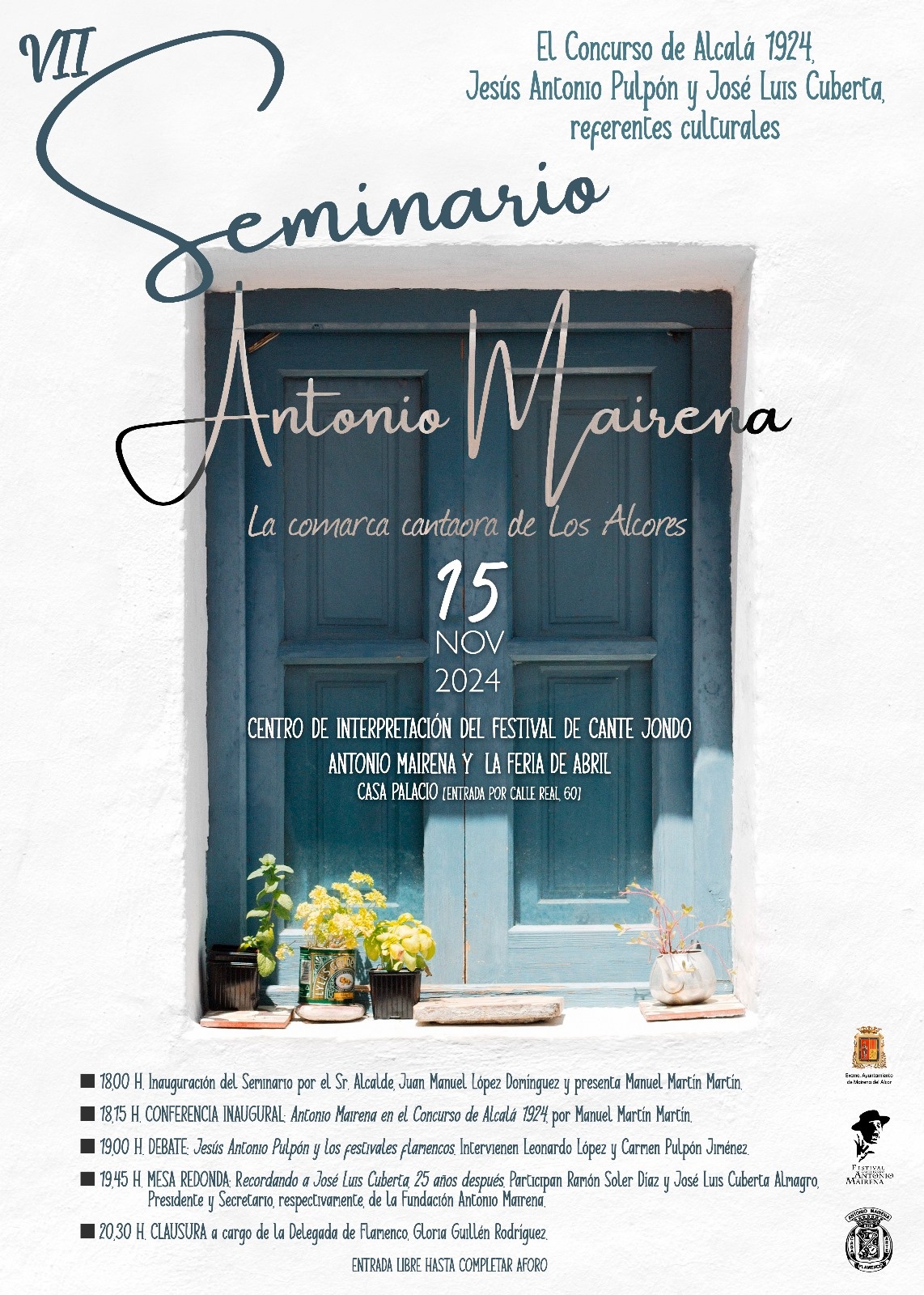 Organizado por el Ayuntamiento de Mairena del Alcor, el VII Seminario Antonio Mairena ‘La comarca cantaora de Los Alcores’ está dedicado al Concurso de Alcalá 1924 y a Jesús Antonio Pulpón y José Luis Cuberta.
