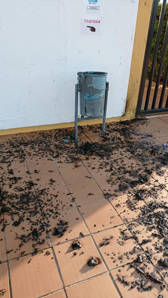 En la noche de hoy, el polideportivo municipal ha sufrido un acto vandálico. Se trata de la quema del toldo de la taquilla de la piscina de verano.