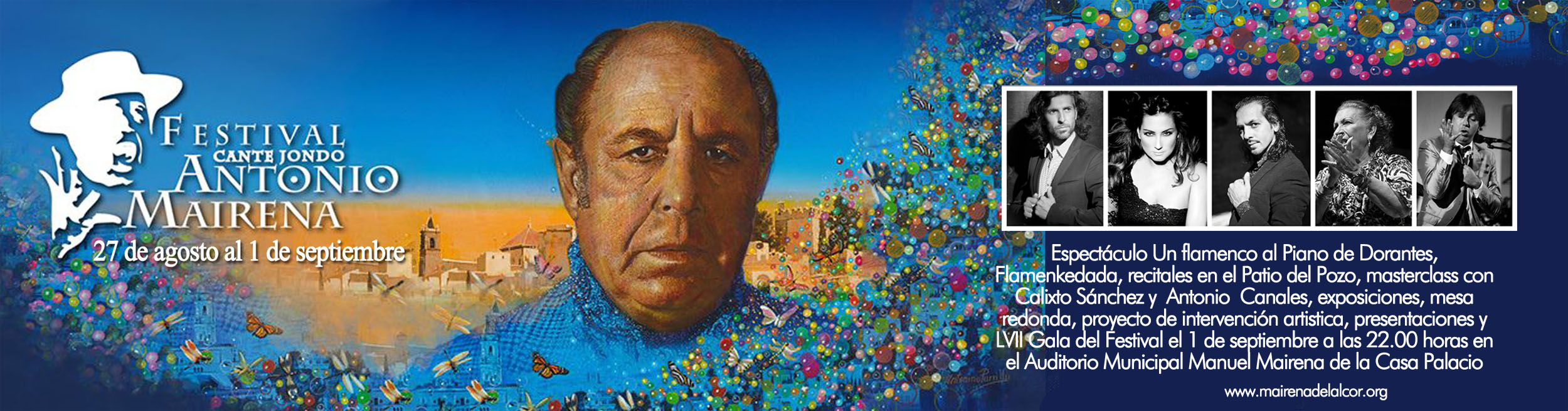 El LVII Festival de Cante Jondo Antonio Mairena se celebrará del 27 de agosto al 1 de septiembre. Este señero e histórico festival ofrece un programa de 15 actividades que incluye espectáculos flamencos, recitales de cante, masterclass, presentaciones, exposiciones y una mesa redonda. El cartel es una obra del artista sevillano Antonino Parrilla, quien también lo elaborara en el año 2000.