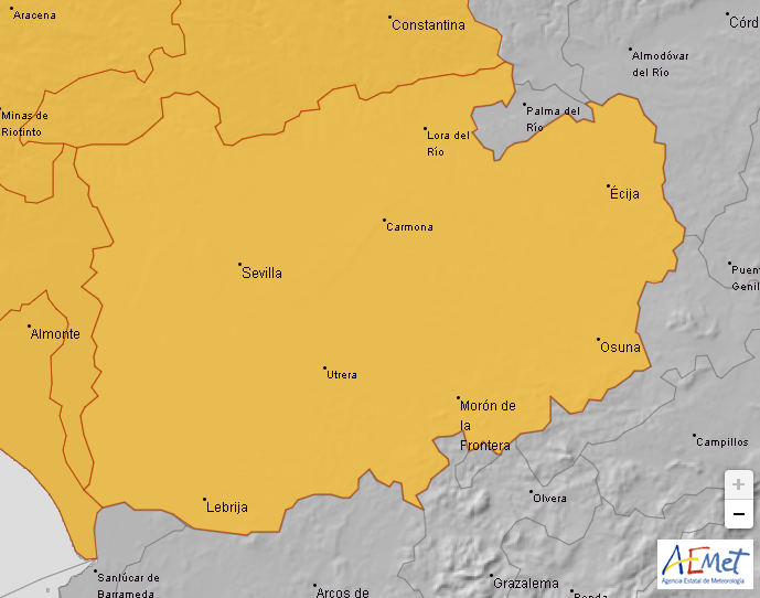 La Agencia Estatal de Meteorología establece el aviso naranja por lluvias, hoy jueves 23 de septiembre de 12.00 a 23.59 horas. Y el aviso amarillo por tormentas de 6.00 a 23.59 horas.