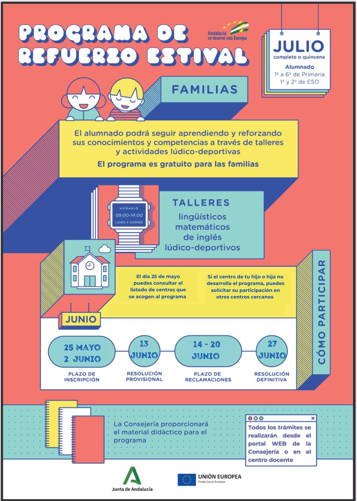 Esta iniciativa está destinada al alumnado de 1º y 2º de Educación Secundaria Obligatoria (ESO) escolarizado en centros docentes públicos o sostenidos con fondos públicos que presente dificultad para alcanzar las competencias o superar los objetivos del curso en el que se encuentre matriculado y, por tanto, necesiten refuerzo especialmente en Lengua Castellana y Literatura, Matemáticas e Inglés. De esta manera, tiene como objetivo principal combatir el fracaso escolar además de ofrecer una alternativa educativa pública y gratuita a las familias andaluzas de conciliación en el mes de julio.