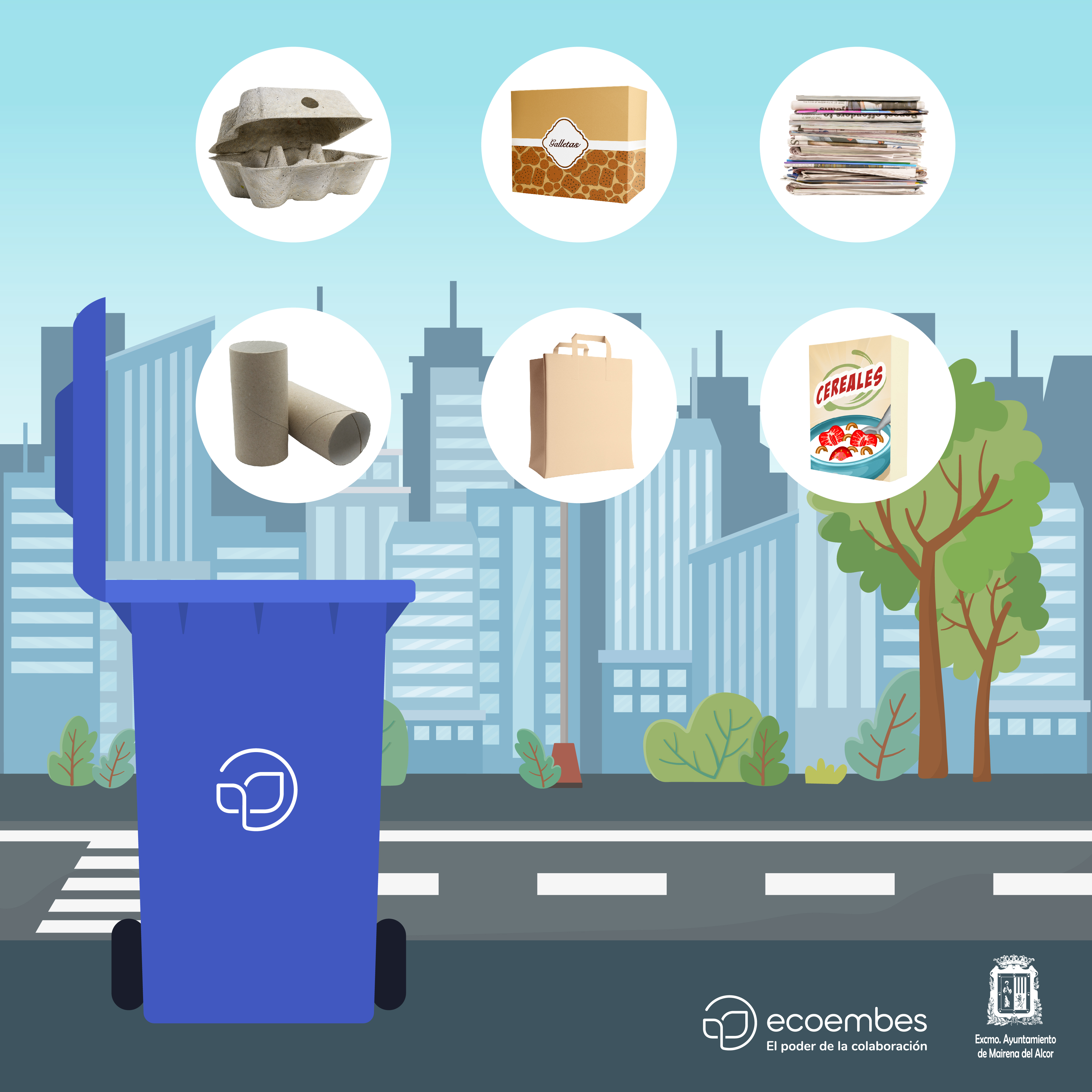 El Ayuntamiento de Mairena del Alcor y Ecoembes ponen en marcha la campaña de sensibilización 'Movimiento Imparable' para fomentar el reciclaje de envases en los contenedores amarillo y azul.