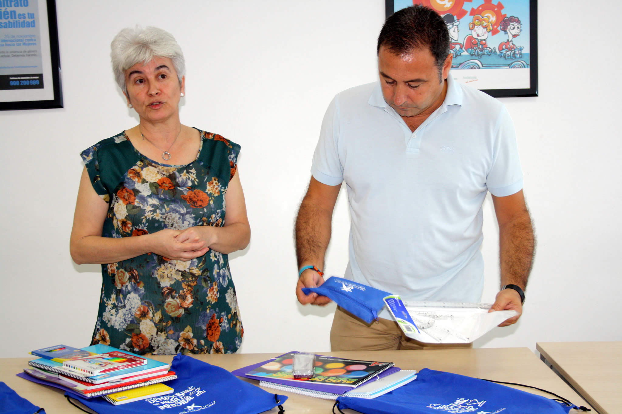 La Delegación de Igualdad y Bienestar Social del Ayuntamiento de Mairena del Alcor entrega 390 kits con el material escolar necesario para afrontar el curso que acaba de comenzar. Diputación de Sevilla y Obra Social la Caixa han hecho entrega del material al Ayuntamiento.