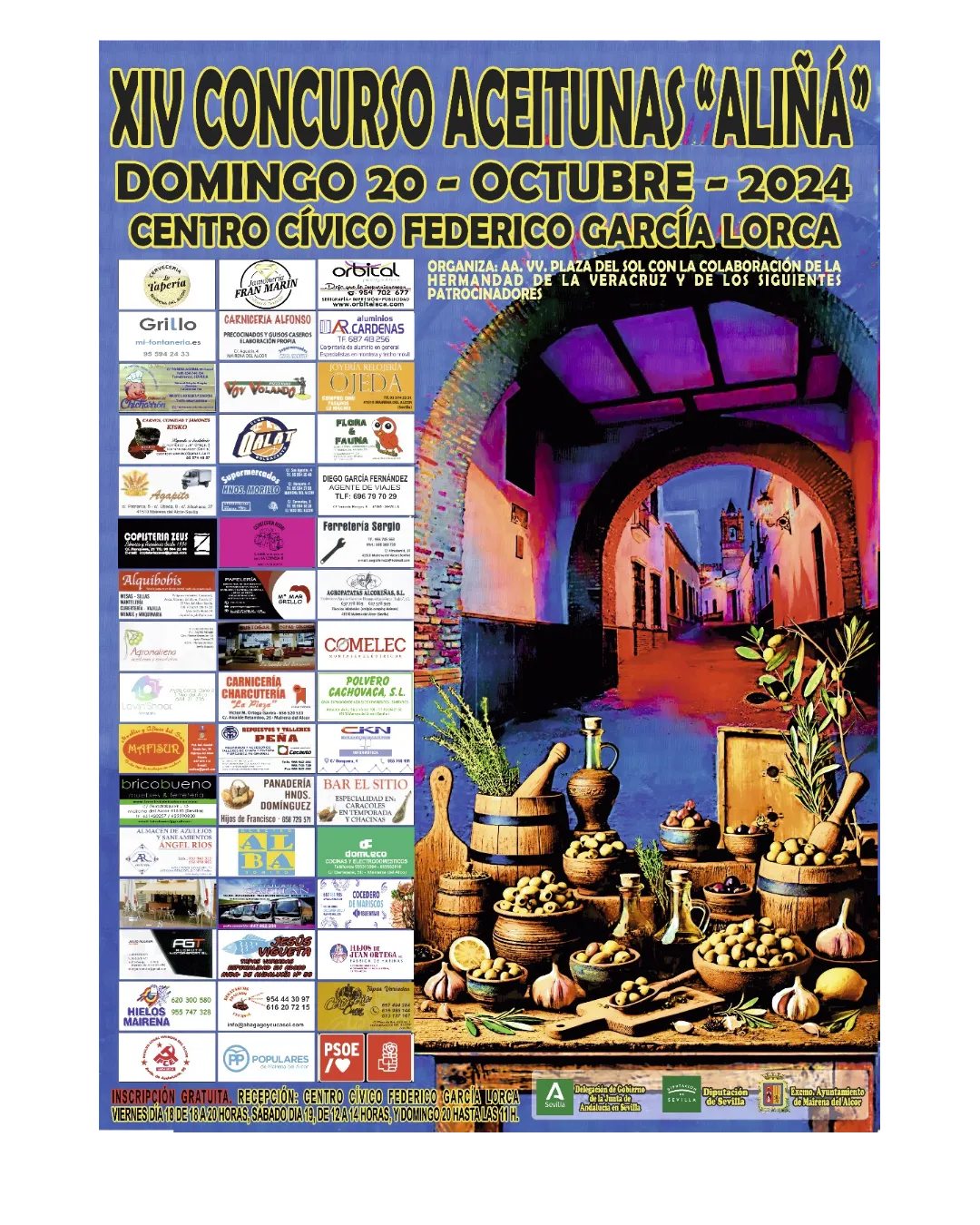 Esta mañana se ha presentado en la Delegación del Gobierno de la Junta de Andalucía en Sevilla y en la Casa de la Provincia de la Diputación de Sevilla el XIV Concurso de Aceitunas ‘Aliñá’, que organiza la asociación de vecinos Plaza del Sol, en el Centro Cívico Federico García Lorca con la colaboración del Ayuntamiento de Mairena del Alcor, de la Hermandad de la Vera Cruz y distintos patrocinadores y se celebra el próximo 20 de octubre.