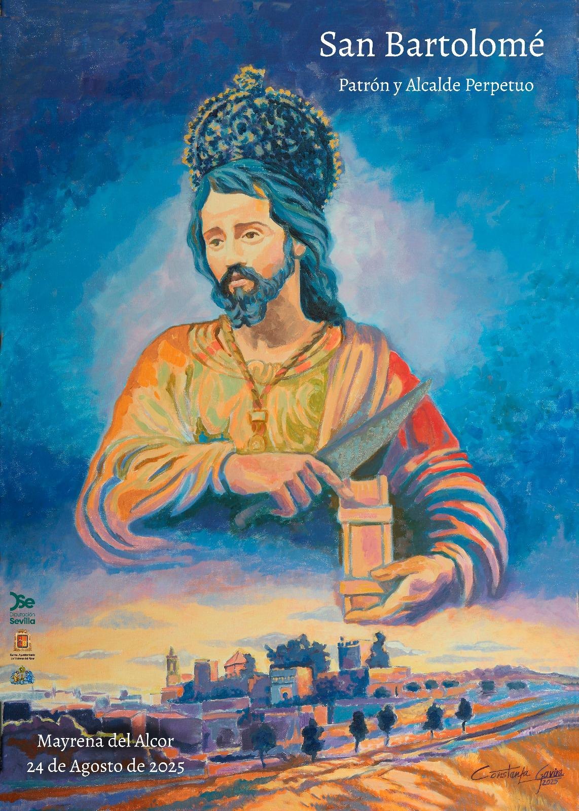 Mairena del Alcor queda bajo el patronazgo de San Bartolomé a partir de 1247, al coincidir la conquista de la villa por Fernando III ‘El Santo’ con la festividad del santo apostol. Es Alcalde Perpetuo desde 1997, año en que también le fue impuesta la Medalla de Oro por el 750 aniversario del patronazgo. Sebastián Santos Rojas es el autor de la imagen, tallada en madera de cedro desde septiembre 1944 a febrero de 1946 y encargada por el Ayuntamiento como regalo a su pueblo.