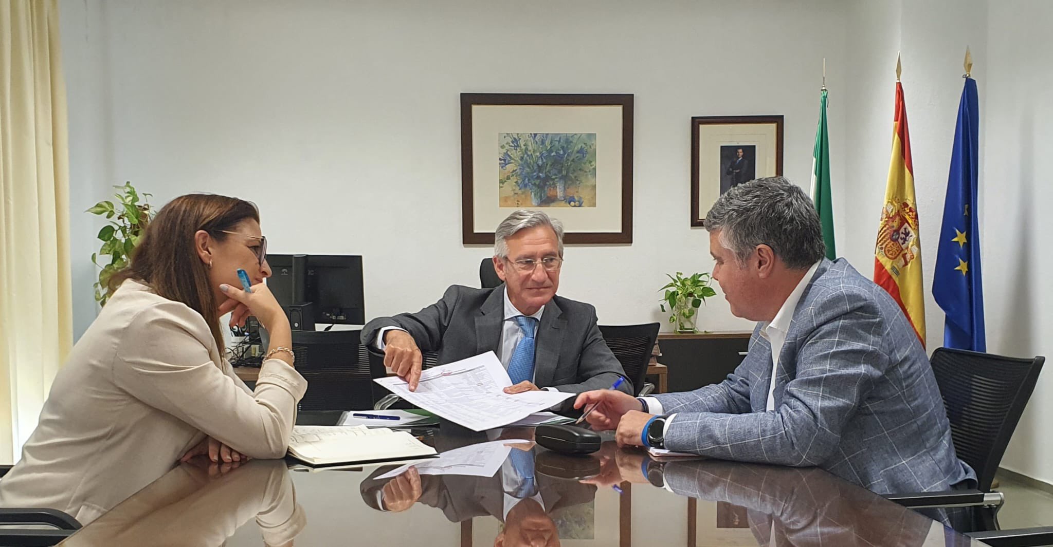 El alcalde de Mairena del Alcor, Juanma López, y la concejala de Educación, Gloria Guillén, han mantenido una reunión de trabajo con el delegado Territorial de Desarrollo Educativo y Formación Profesional y de Universidad, Investigación e Innovación en Sevilla, Miguel Ángel Araúz, para repasar este curso e informar del expediente de obra del IES María Inmaculada que pronto dará pasos importantes.
