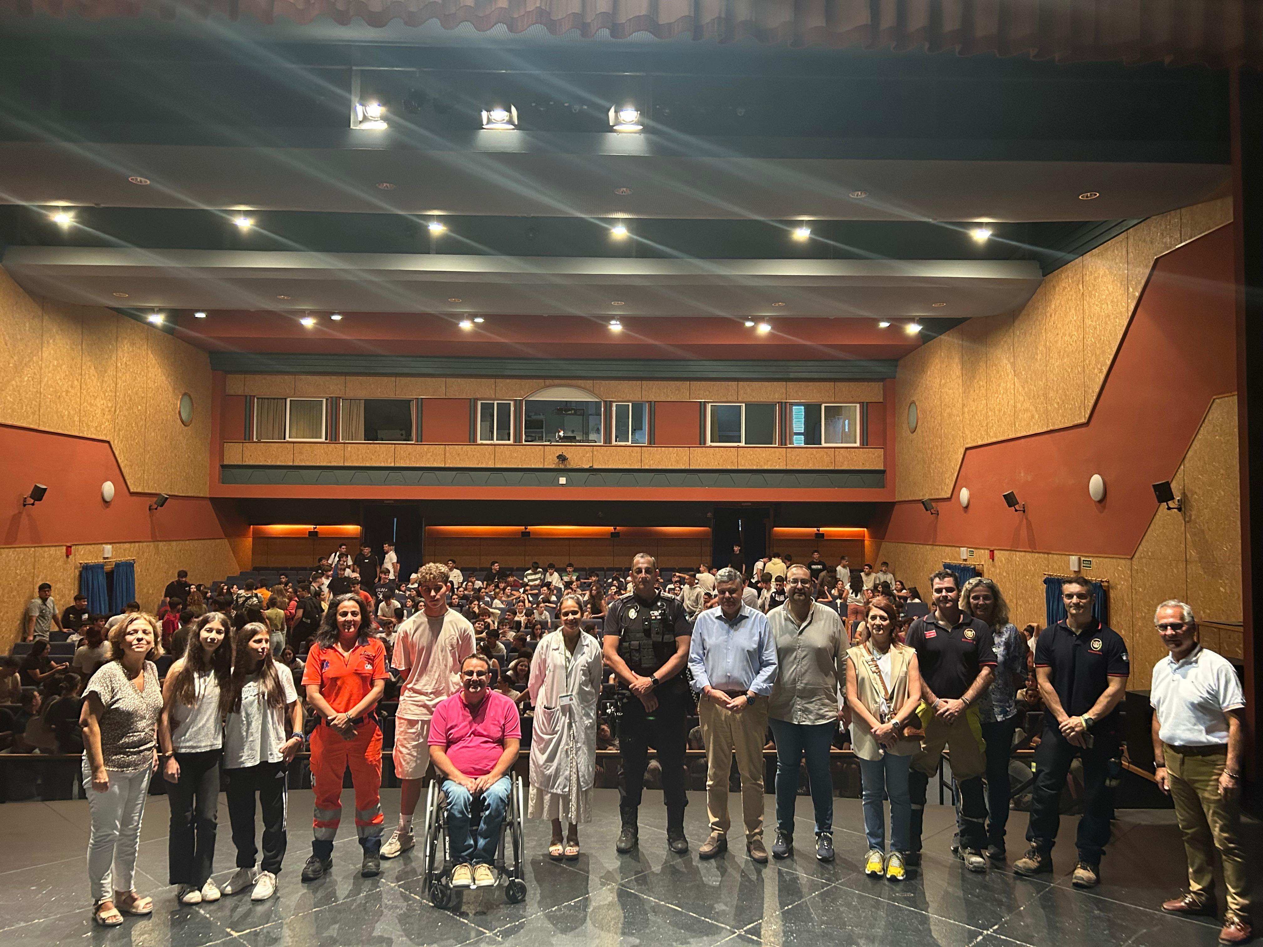 Una buena parte del alumnado de secundaria de Mairena del Alcor ha asistido esta mañana al Road Show, un espectáculo multimedia impactante concebido como actividad de educación vial. Una representación que ha tenido lugar en el teatro municipal Calixto Sánchez con la participación de policía, bomberos, paramédicos, médicos, familiares y víctimas, que buscan concienciar a la juventud sobre los peligros de la conducción inadecuada.