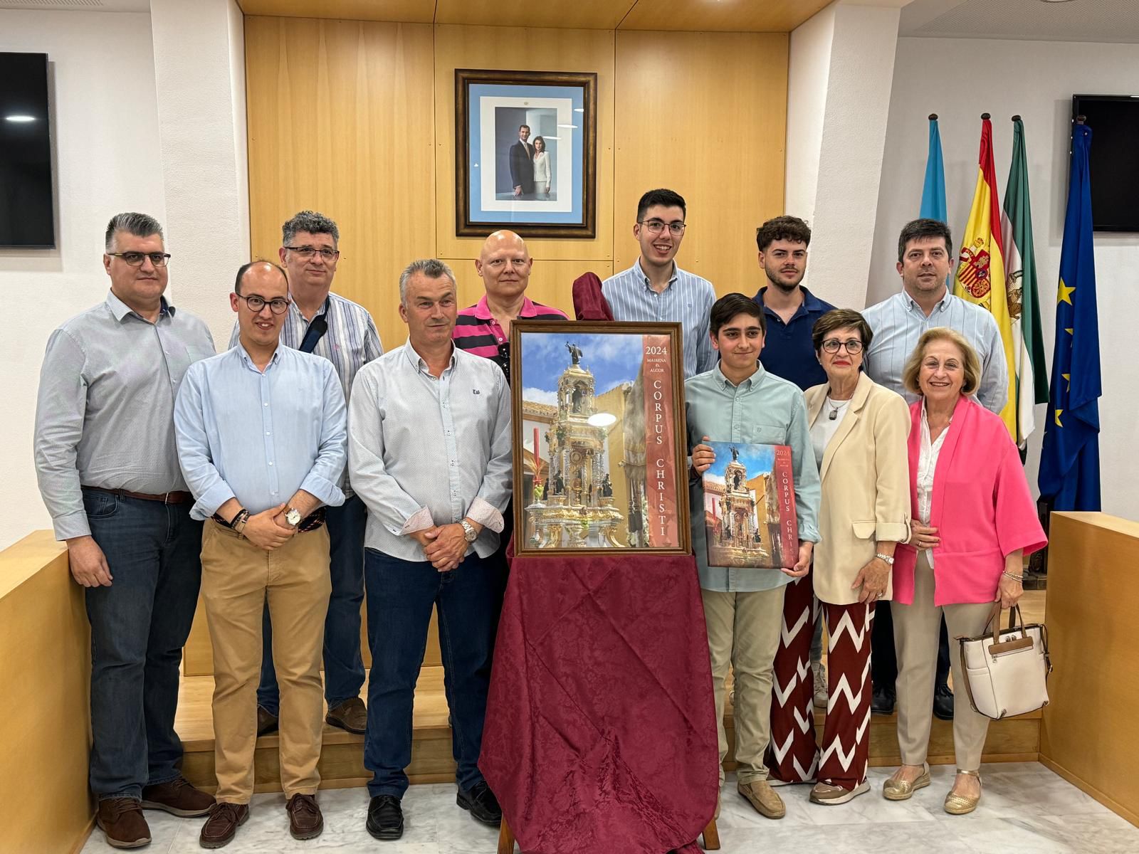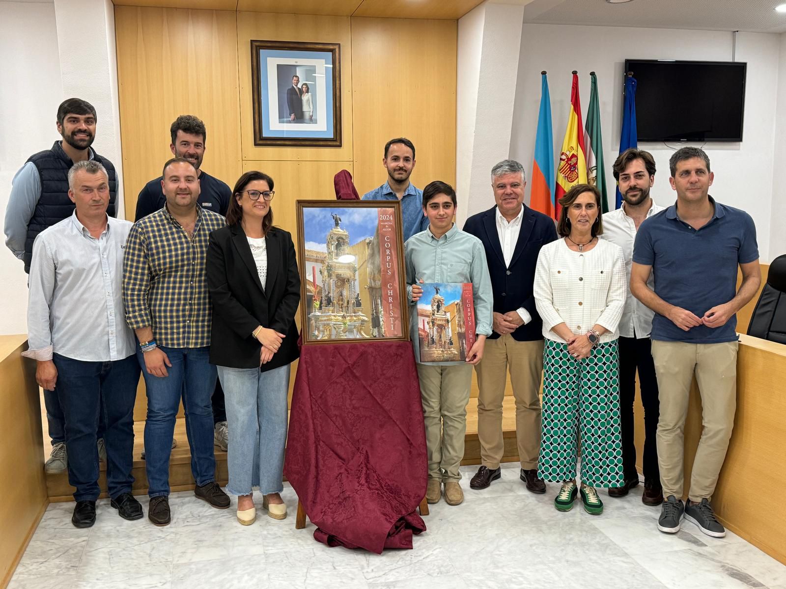 Asistieron a la presentación del cartel el alcalde, Juanma López, la concejala de Festejos, Inmaculada Galocha, concejales de la corporación, familiares y miembros de la Archicofradía Sacramental de Mairena del Alcor.