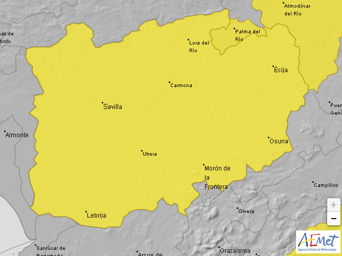 La Agencia Estatal de Meteorología establece el aviso amarillo por altas temperaturas, hoy miércoles 4 de agosto de 13 a 20 horas. Temperatura máxima 38º C.