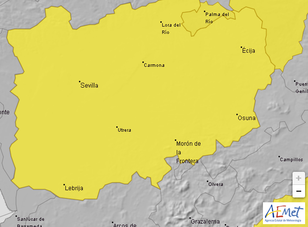La Agencia Estatal de Meteorología establece el aviso amarillo por altas temperaturas, hoy viernes 6 de agosto de 14 a 21 horas. Temperatura máxima 38º C.