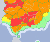 El Ayuntamiento de Mairena del Alcor comunica que la Agencia Estatal de Meteorología, AEMET, establece el nivel rojo de aviso por el registro de temperaturas altas que oscilarán entre 23 / 43º C, en horario de 12:00 a 20:00 horas hoy jueves 13 de julio.