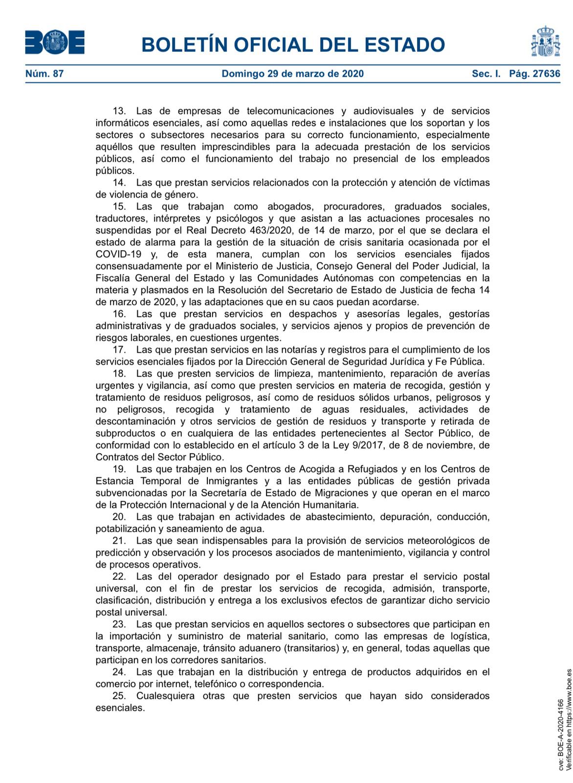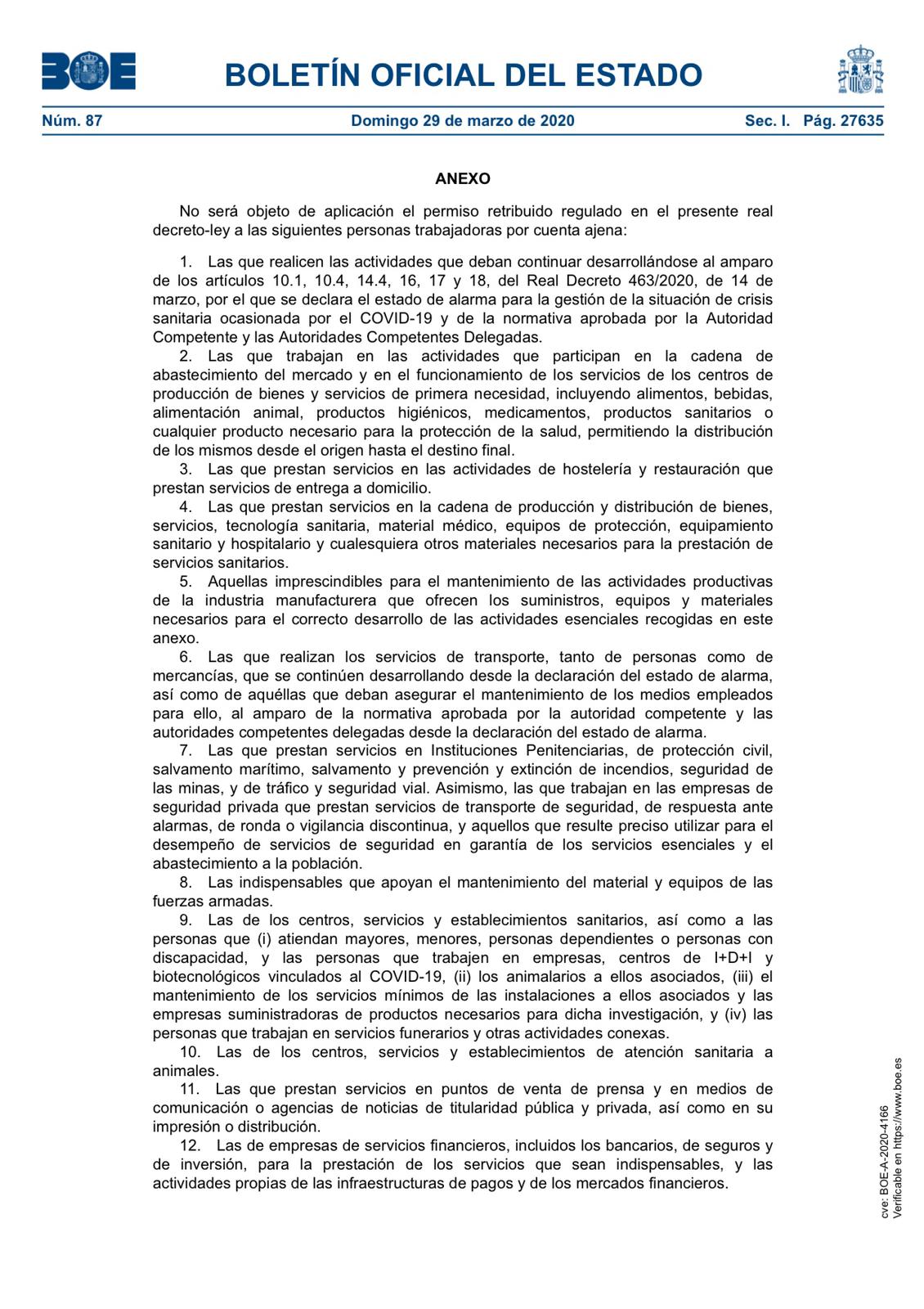 El Gobierno decreta un permiso retribuido recuperable y obligatorio para el resto, que permanecerán en sus casas entre el 30 de marzo y el 9 de abril de 2020.