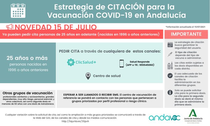 LOS MAYORES DE 25 AÑOS YA PUEDEN PEDIR CITA PARA LA PRIMERA DOSIS DE LA VACUNA