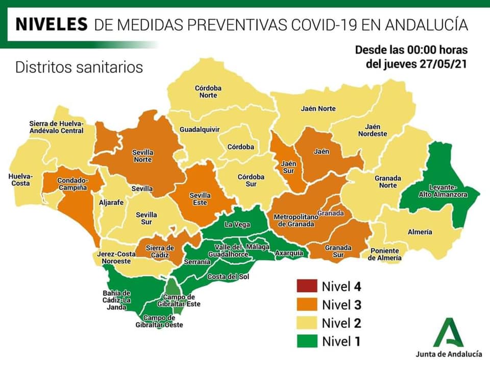 Tras la reunión celebrada este miércoles de los comités territoriales de Salud Pública de Alto Impacto de las ocho provincias andaluzas conocemos los nuevos niveles de alerta sanitaria.