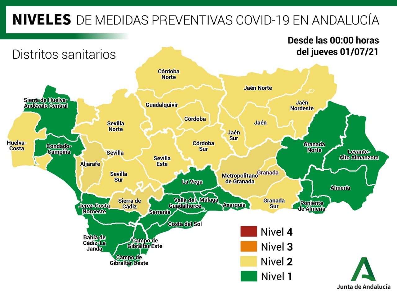 Tras la reunión celebrada este miércoles 30 de junio, de los comités territoriales de Salud Pública de Alto Impacto de las ocho provincias andaluzas, conocemos los nuevos niveles de alerta sanitaria.