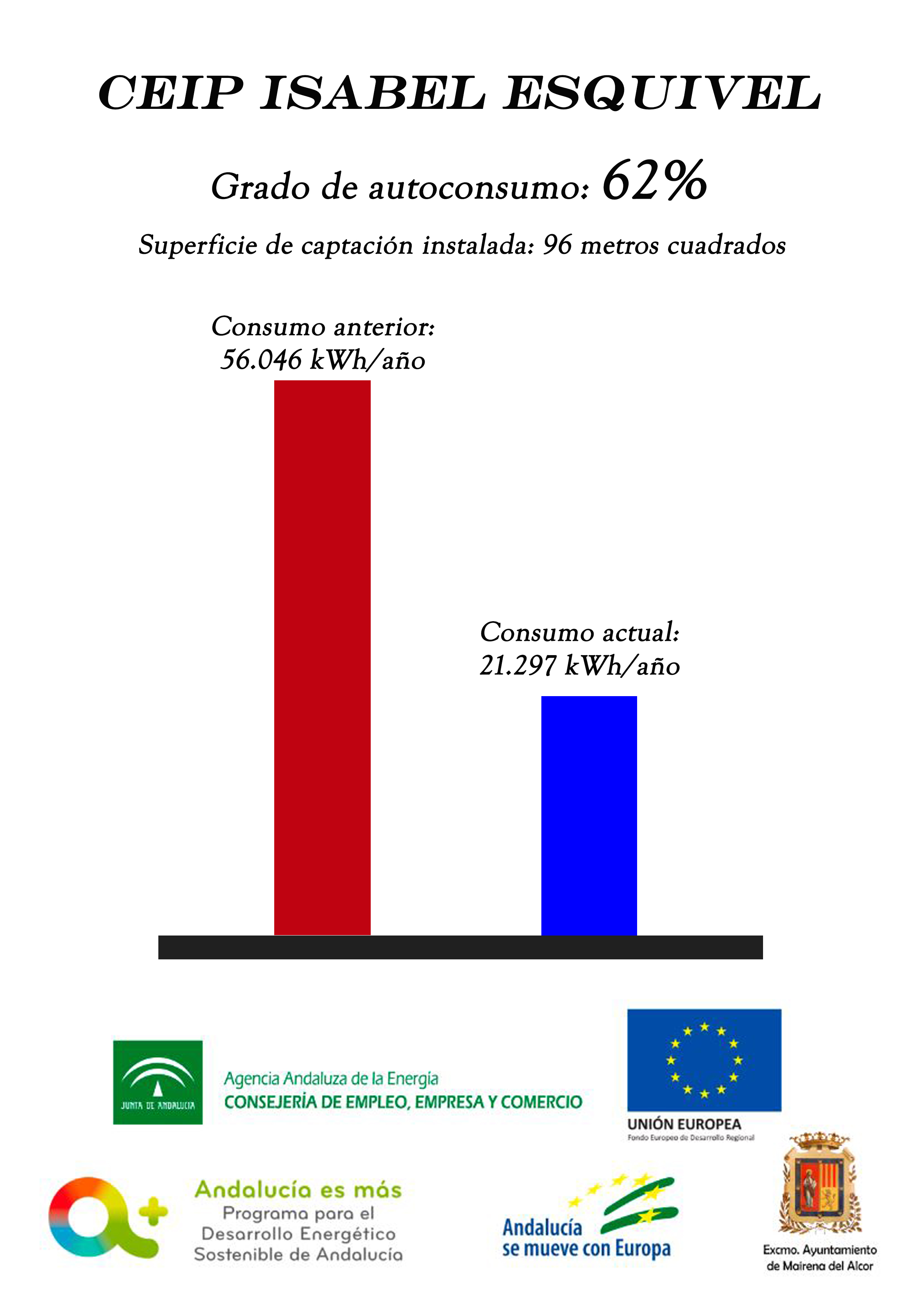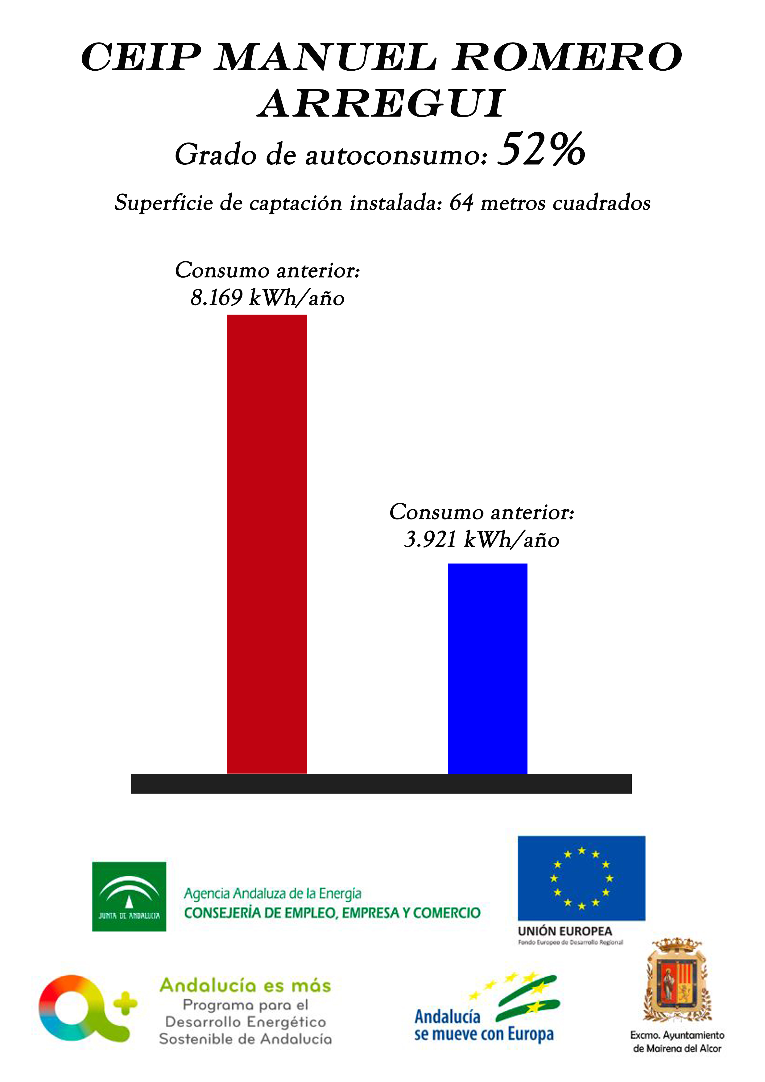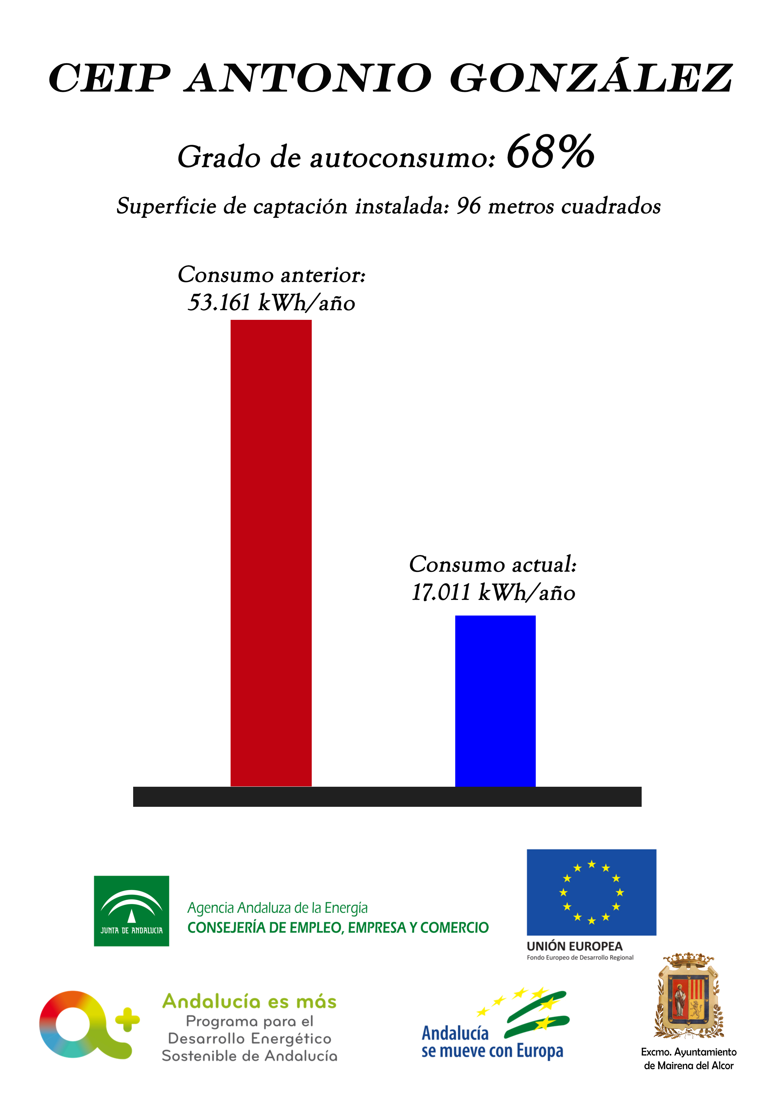 El Ayuntamiento de Mairena del Alcor ha invertido 1.574.672,29 euros en eficiencia energética y fotovoltaica en todos los colegios y varios edificios públicos.