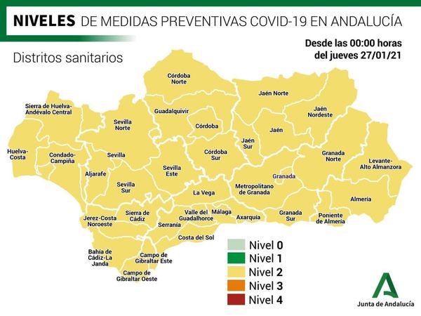 Los distritos sanitarios Sevilla Norte, Sevilla, Aljarafe, Sevilla Este y Sevilla Sur continúan en el nivel de alerta 2 (riesgo medio). Mairena del Alcor forma parte del distrito Sevilla Norte. Por tanto, la localidad sigue en el nivel de alerta 2.
