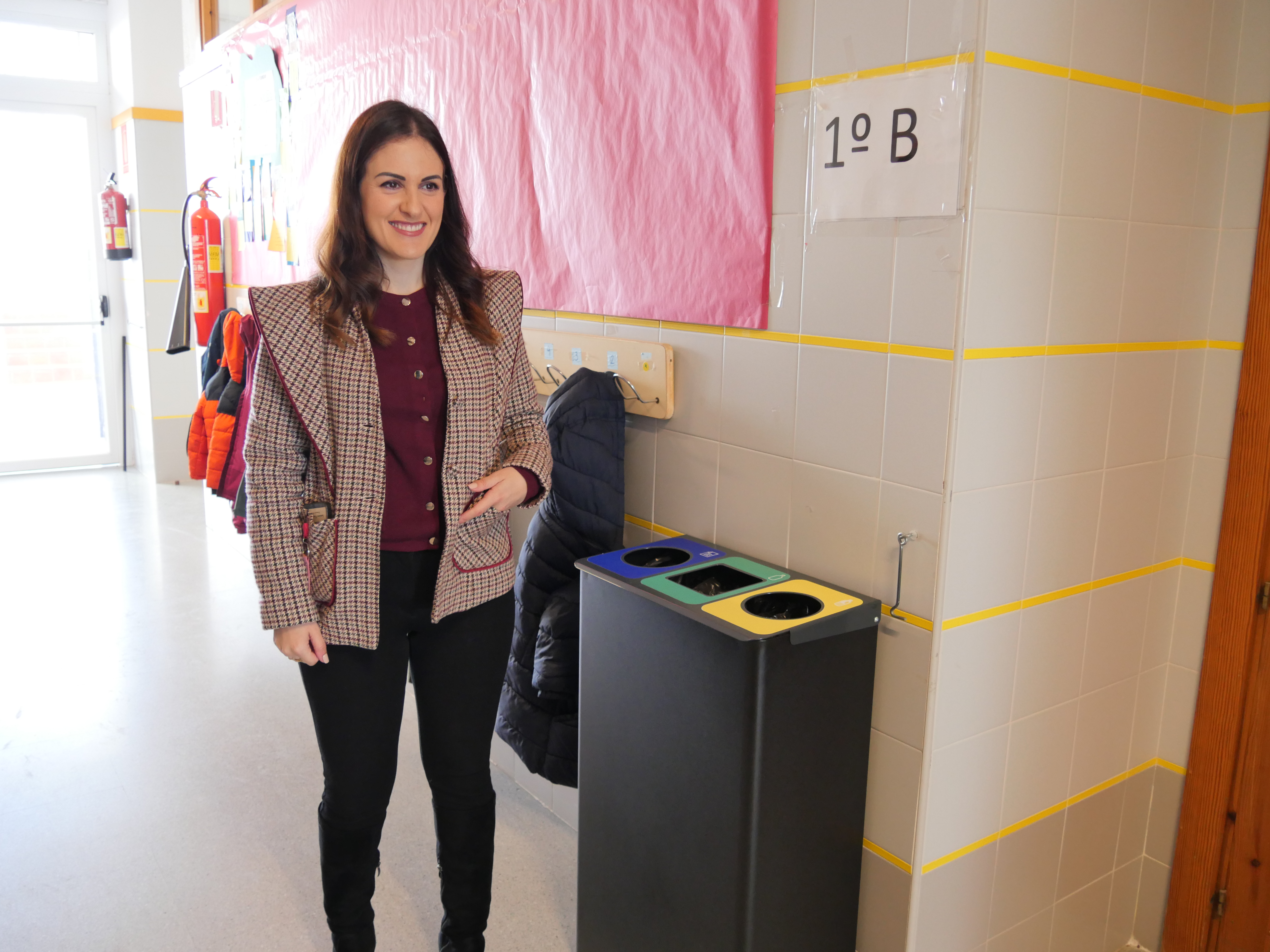 La concejala de Medio Ambiente, Ana Guillén, ha visitado esta mañana el colegio Isabel Esquivel para verificar la colocación de las nuevas papeleras con 3 compartimentos para reciclar, destinados a papel, vidrio y plástico. La empresa concesionaria del servicio de limpieza ha repartido papeleras selectivos por todos los colegios maireneros, como parte de las políticas municipales ambientales de reciclaje y concienciación.