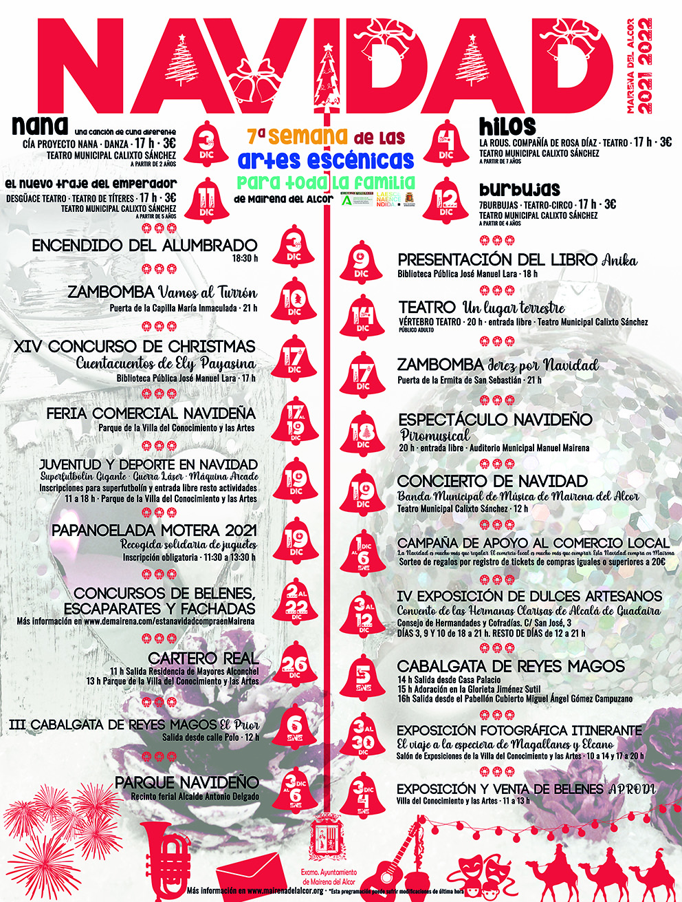 Comienza mañana miércoles 1 de diciembre con el inicio de la Campaña de Apoyo al Comercio Local que este año se identifica con el lema ‘La Navidad es mucho más que regalar. El comercio local es mucho más que comprar. Esta Navidad compra en Mairena’. Las primeras actividades darán comienzo el viernes 3 de diciembre con la apertura del Parque Navideño en el recinto ferial. Atracciones y puestos de churros y comida harán las delicias de toda la familia.