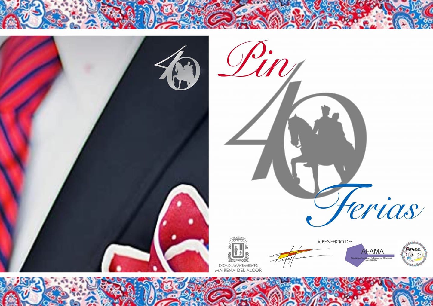 El pin conmemora el 40 aniversario del traslado de la feria, del paseo al recinto ferial Alcalde Antonio Delgado. Una iniciativa del Ayuntamiento con diseño de José Manuel Peña.