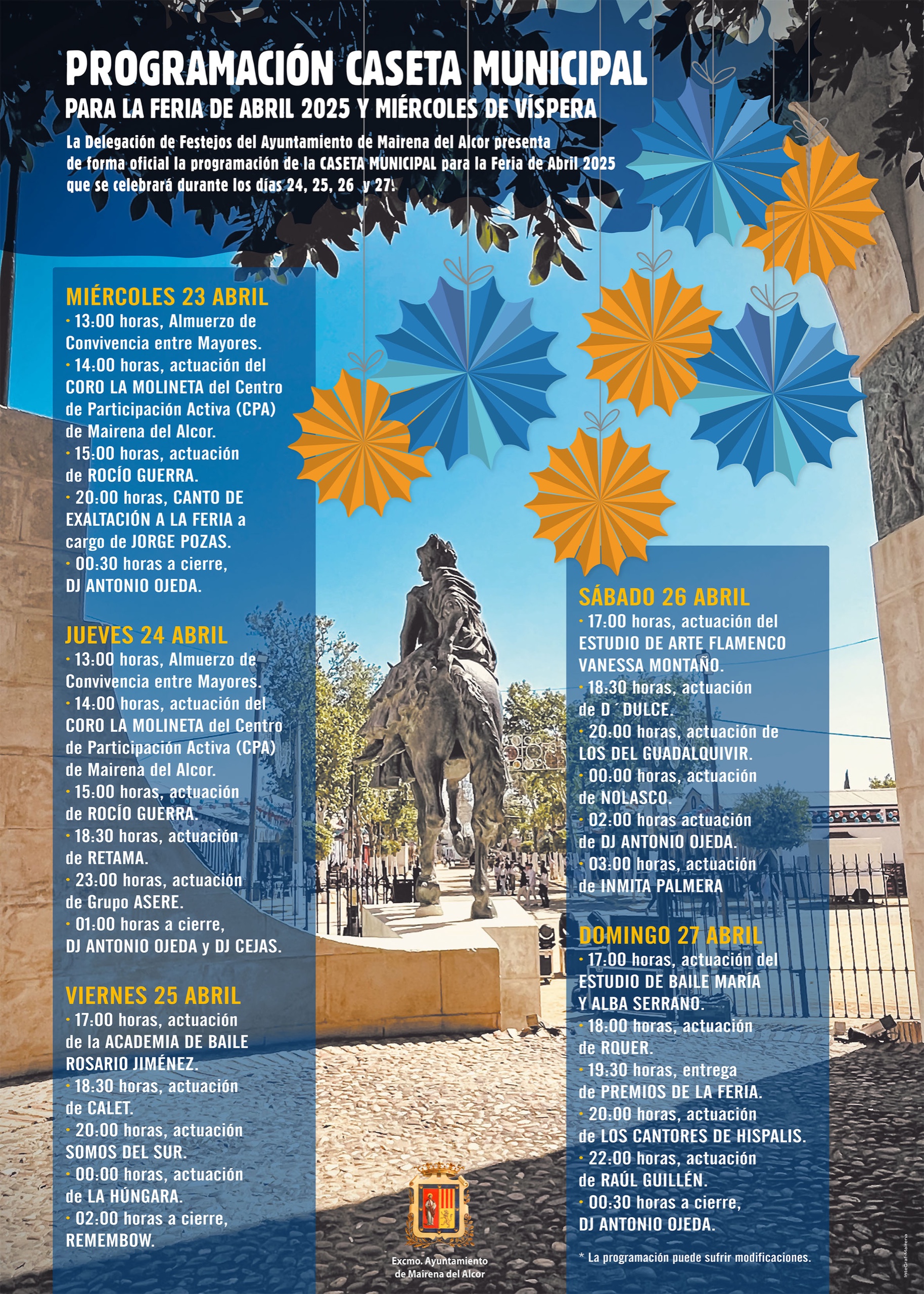La Húngara y Cantores de Híspalis son algunos de los artistas que conforman la programación de la caseta municipal para esta feria 2025. Así lo ha anunciado esta mañana la concejala de Festejos, Inmaculada Galocha, desde el recinto ferial alcalde Antonio Delgado. Como ha detallado el técnico de Festejos, Rubén Hernández, son más de 24 las actuaciones previstas desde el domingo de preferia.