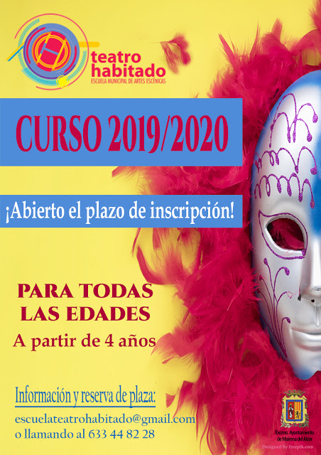 La Escuela Municipal de Artes Escénicas Teatro Habitado abre el periodo de matriculación para el curso 2019/20. Ya puedes reservar tu plaza para los cursos anuales. Todas las edades a partir de los 4 años. Las clases comenzarán la primera semana de octubre. Infórmate en el 633 44 82 28 o escribiendo a escuelateatrohabitado@gmail.com.