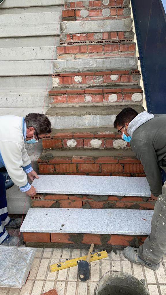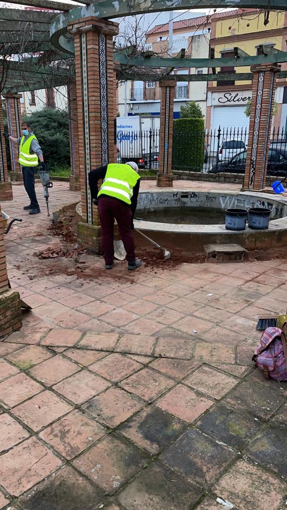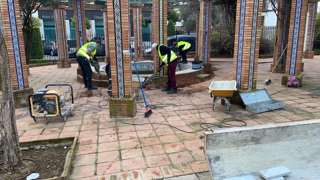 Los operarios municipales realizan labores de mantenimiento, conservación y mejora de las instalaciones y el mobiliario urbano. En concreto, en las fuentes laterales del Paseo de la Feria Antigua en la Avenida de Andalucía y en los peldaños de las escaleras de las gradas del campo de fútbol Jozabed Sánchez.