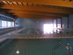 El solar donde se ubica la edificación se localiza al Noroeste del casco urbano, lindando al Oeste con el Parque Municipal, al Sur con el campo de fútbol la Albanera, y teniendo su acceso a través de la celle Avenida Vereda de San Agustín. El solar es de forma rectangular con una superficie de 3895 m 2 . El edificio tiene un sótano donde se ubican las dependencias para las calderas y el mantenimiento para las instalaciones; en el semisótano lleva un aparcamiento. La planta baja del edificio acoge el resto de las instalaciones y el recinto donde se ubican las piscinas.