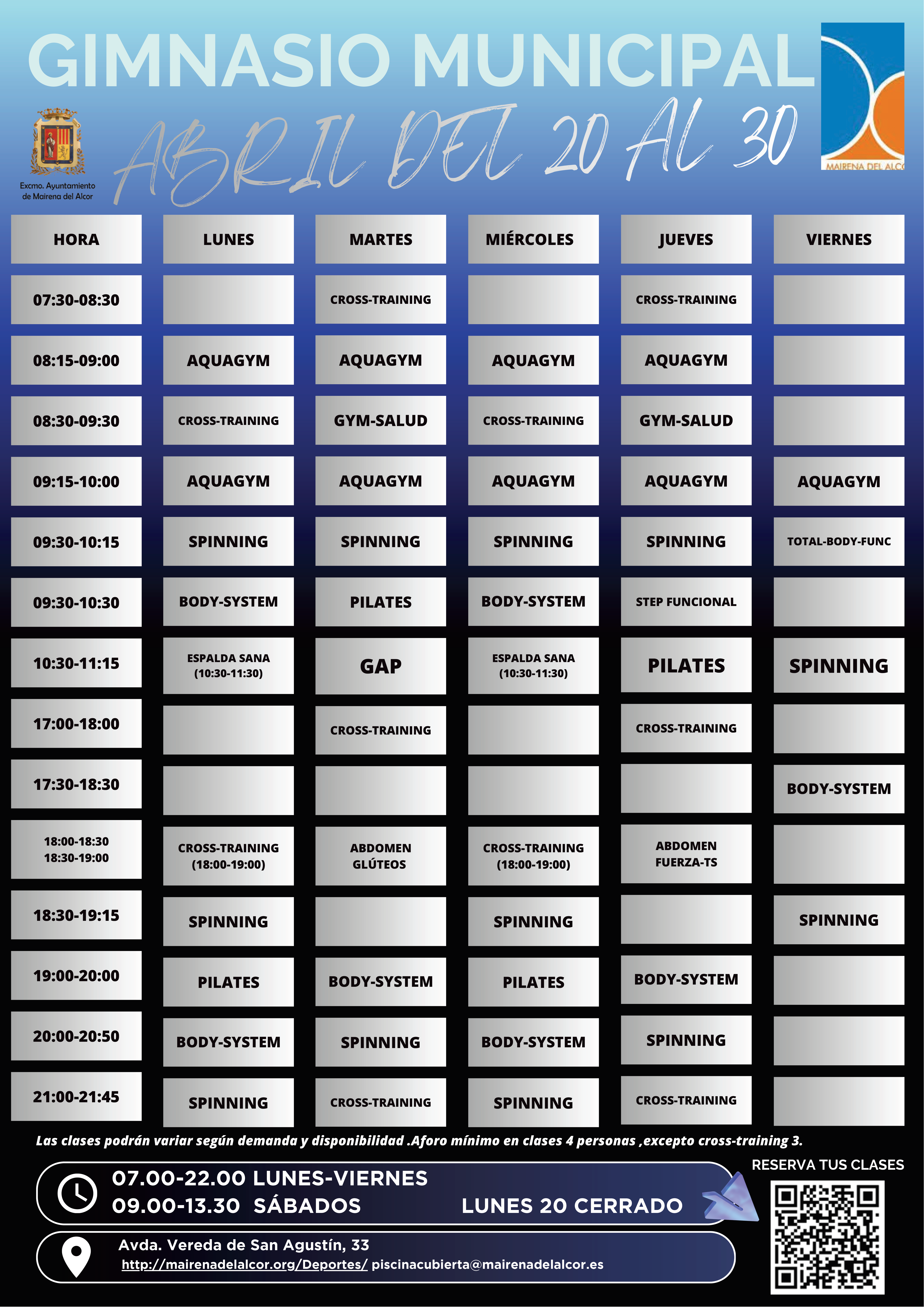Delegación de Deportes Teléfono 95 509 30 58 email deportes@mairenadelalcor.esPiscina y Gimnasio Teléfono 95 574 88 67 email piscinacubierta@mairenadelalcor.es