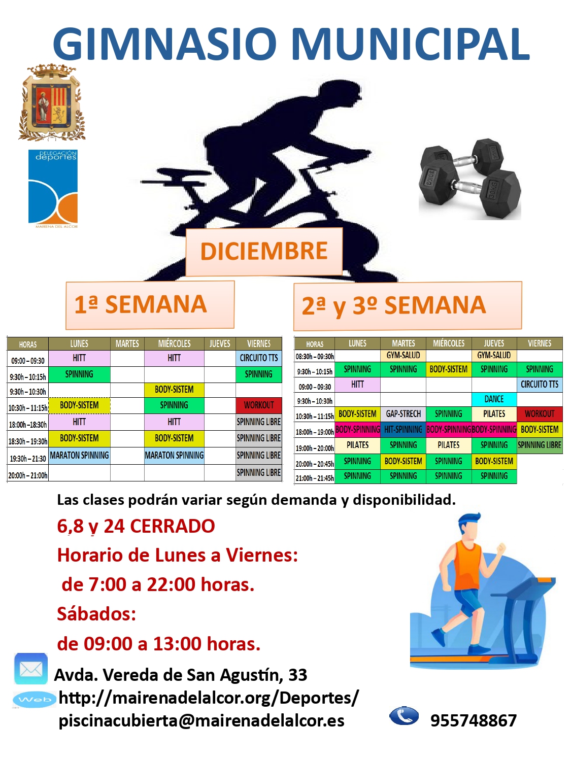 Delegación de Deportes Teléfono 95 509 30 58 email deportes@mairenadelalcor.esPiscina y Gimnasio Teléfono 95 574 88 67 email piscinacubierta@mairenadelalcor.es