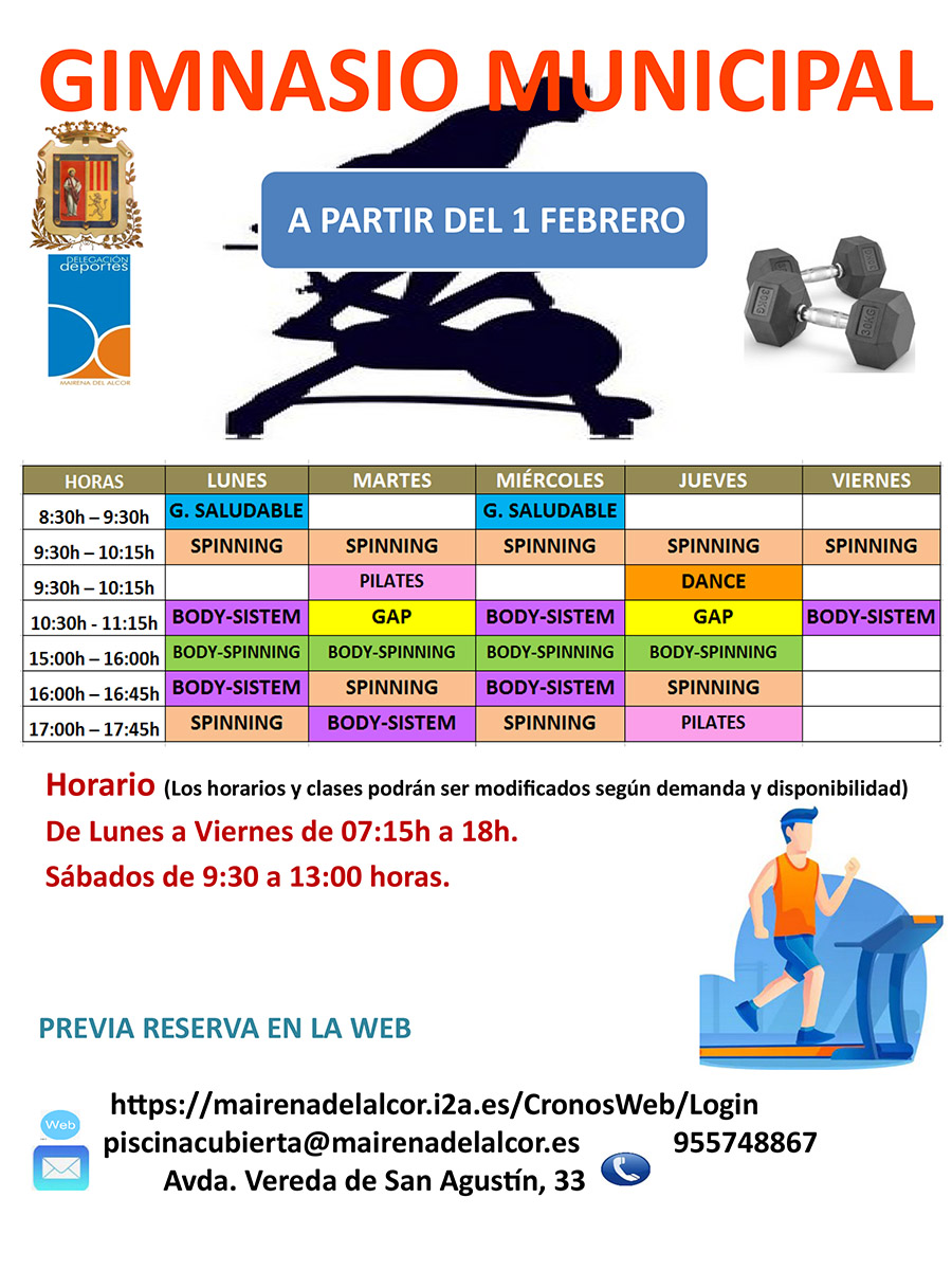 La Delegación de Deportes informa del horario del gimnasio municipal a partir del 1 de febrero.