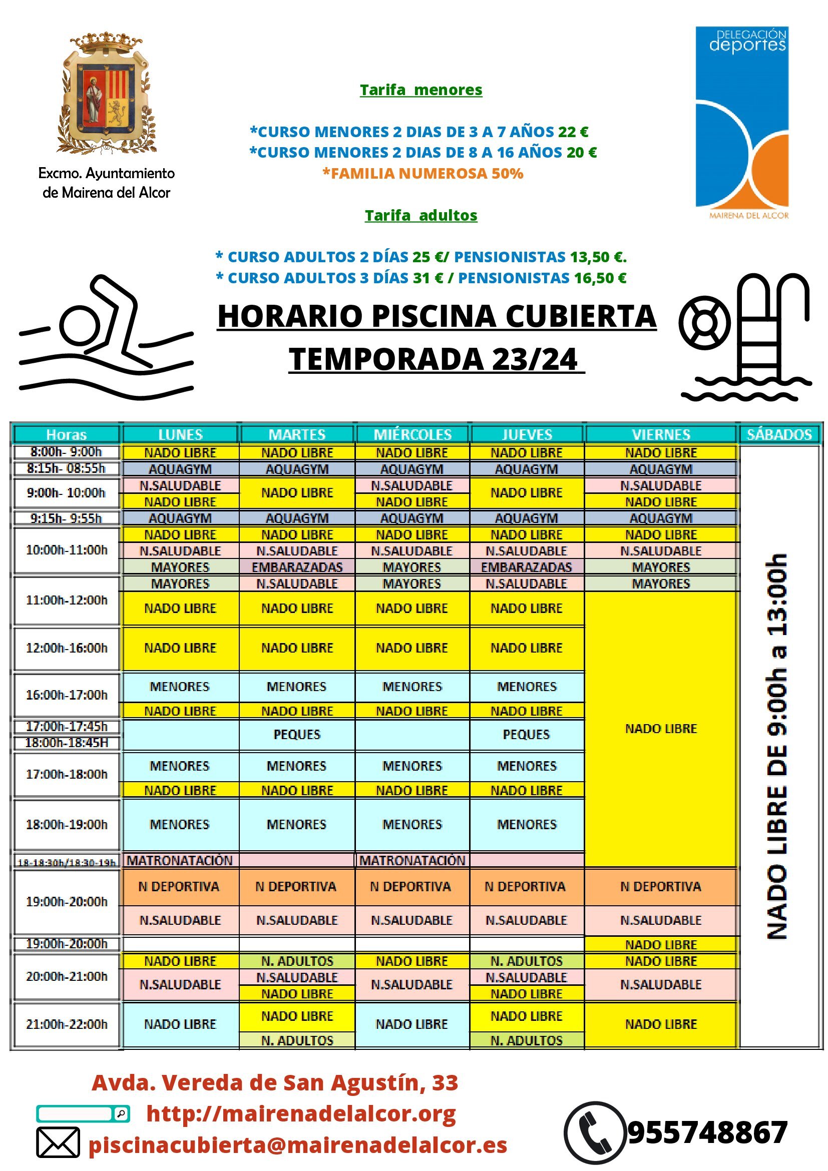 La Delegación de Deportes informa que la inscripción comienza el 14 de septiembre en el mostrador de la piscina cubierta y online a partir de las 17 horas hasta el 20 de septiembre.