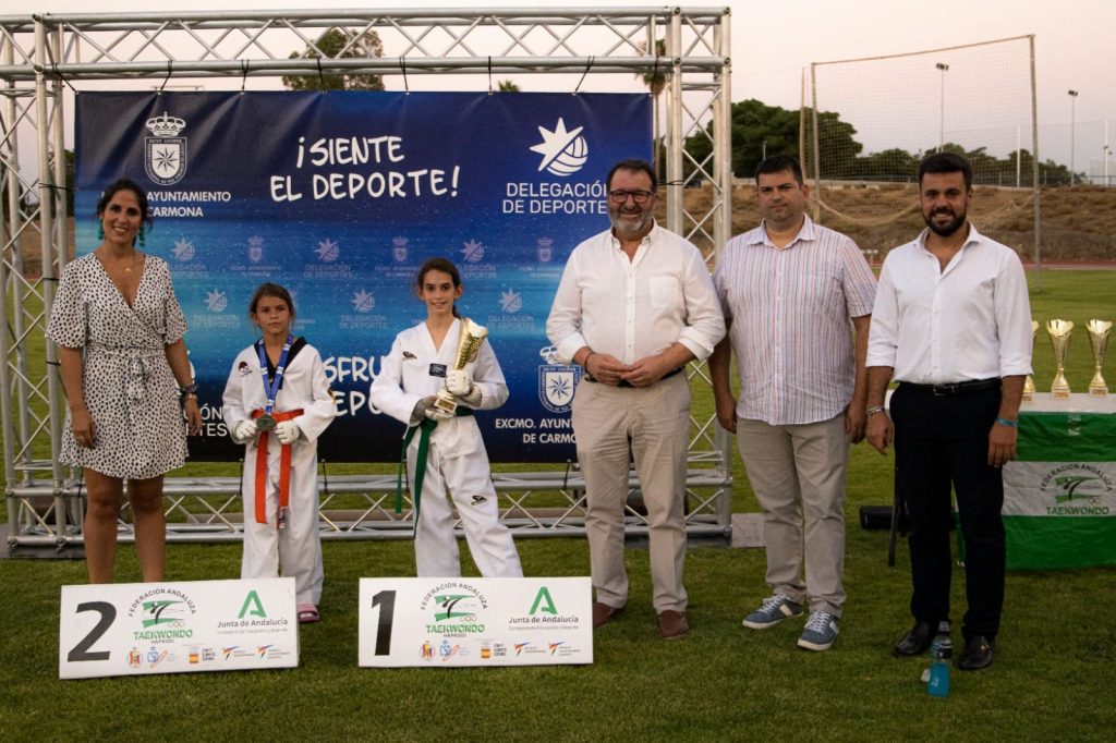 La delegada de Transparencia y Buen Gobierno, Míriam Domínguez, asistió al Trofeo Nocturno Campeón de Campeones precadete y cadete, organizado por la Federación Andaluza de Taekwondo y el Ayuntamiento de Carmona en las instalaciones del ‘Pepe Olías’, donde los campeones y subcampeones de Andalucía de ambas categorías se han vuelto a medir en el tatami en un ambiente más relajado y distendido, dando nota del gran nivel técnico que tienen. Los deportistas del TKD Mairena del Alcor obtuvieron muy buenos resultados tras sus combates.