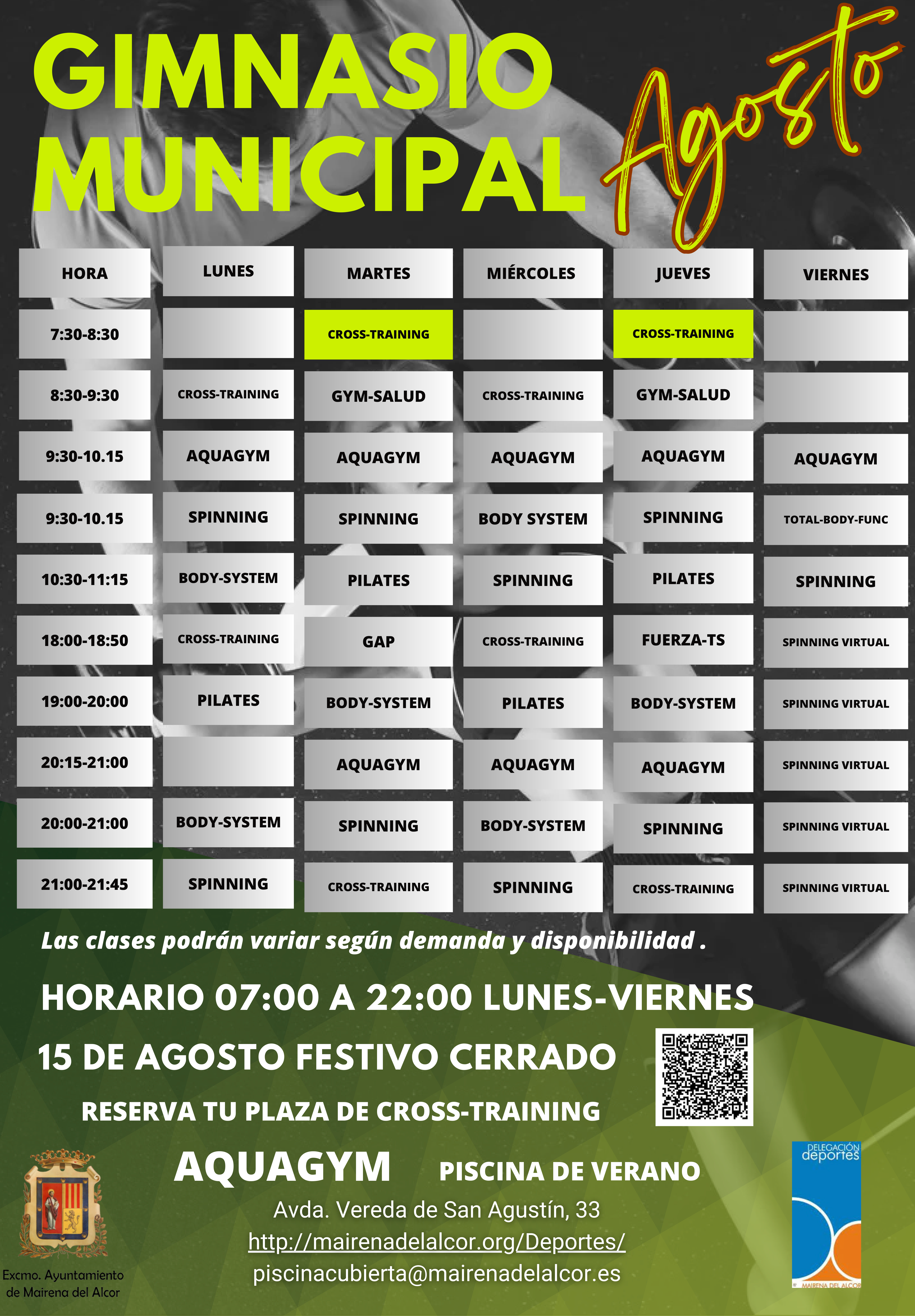 Piscina y Gimnasio Teléfono 95 574 88 67 email piscinacubierta@mairenadelalcor.es