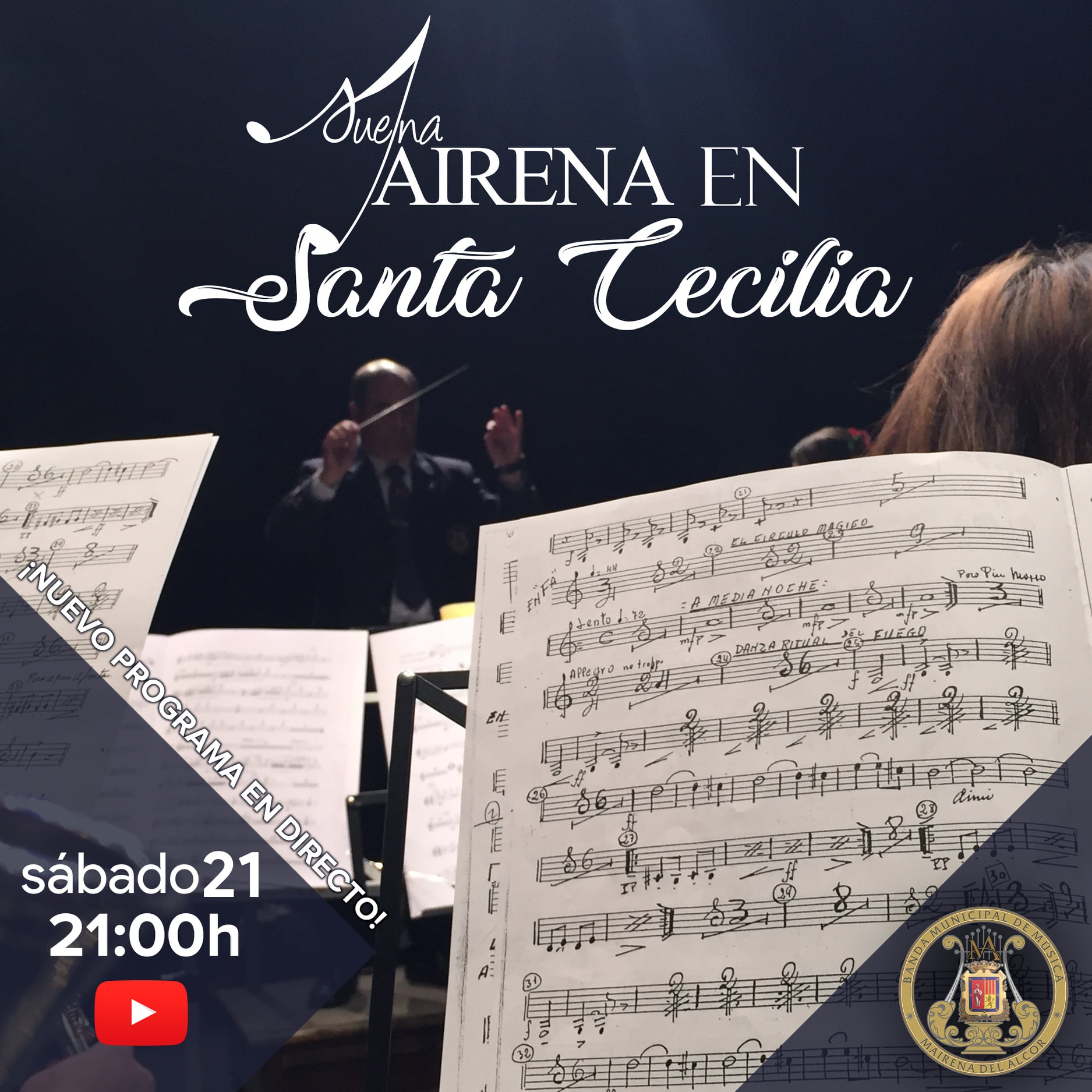 La Banda Municipal de Música de Mairena del Alcor conmemora la festividad de Santa Cecilia, patrona de la música, adaptando la celebración a las medidas sanitarias mediante la utilización de las nuevas tecnologías. Así,el sábado 21 de noviembre a las 21:00 horas recopilará las mejores obras que ha interpretado en los últimos años en un concierto virtual que emitirá en directo desde sus propias plataformas digitales.